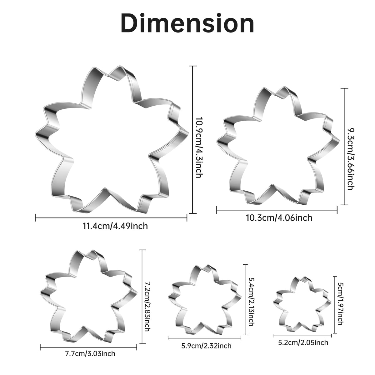 Cherry Blossoms Flower Style Cookie Cutter Christmas Biscuit Cutters New Years Day Diy Baking Mold, Pack Of 5