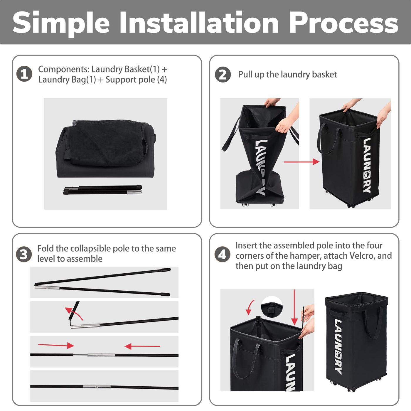 • Q: What material is the laundry hamper made of? A: The laundry hamper is made of 600D oxford fabric, which is lightweight yet sturdy.