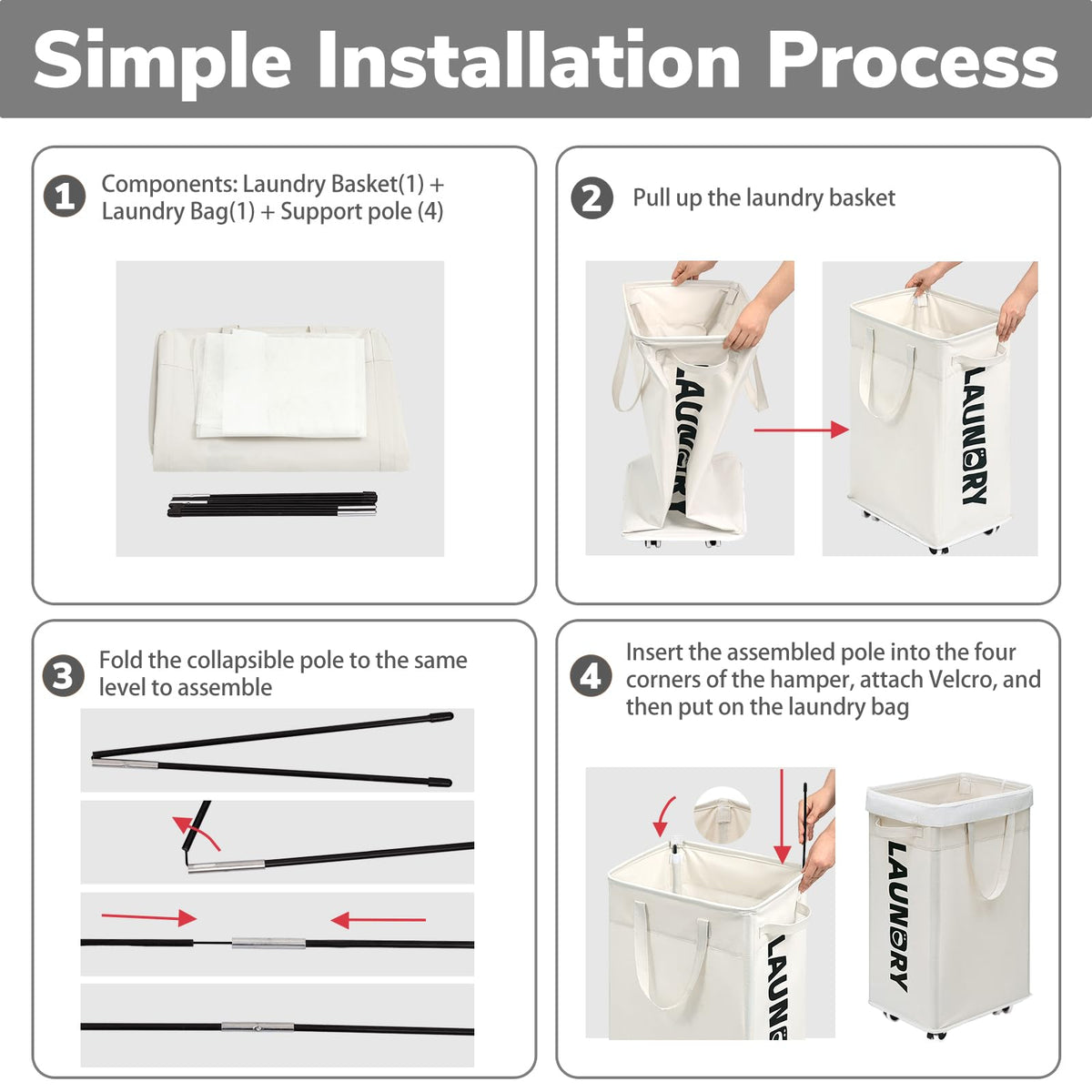 - Q: What care instructions should I follow for the laundry hamper? A: To maintain the hamper's condition, avoid machine washing or drying; instead, wipe it down with a damp cloth.