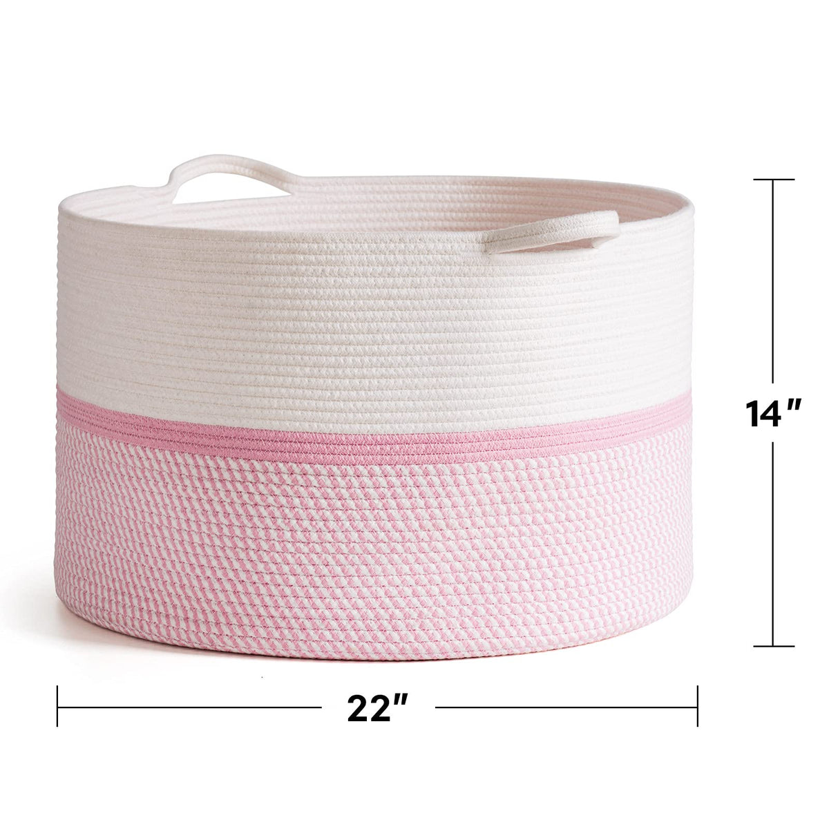 Chicvita Extra Large Cotton Rope Woven Basket, Xxl Throw Blanket Storage Basket With Handles, Pink Decorative Clothes Hamper - 2