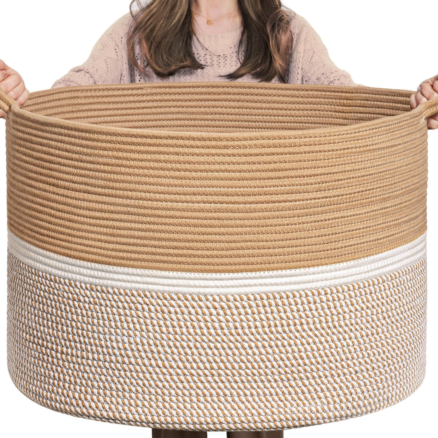 Chicvita Xxl Extra Large Cotton Rope Woven Basket, Throw Blanket Storage Basket With Handles, Decorative Clothes Hamper - 22 X 2