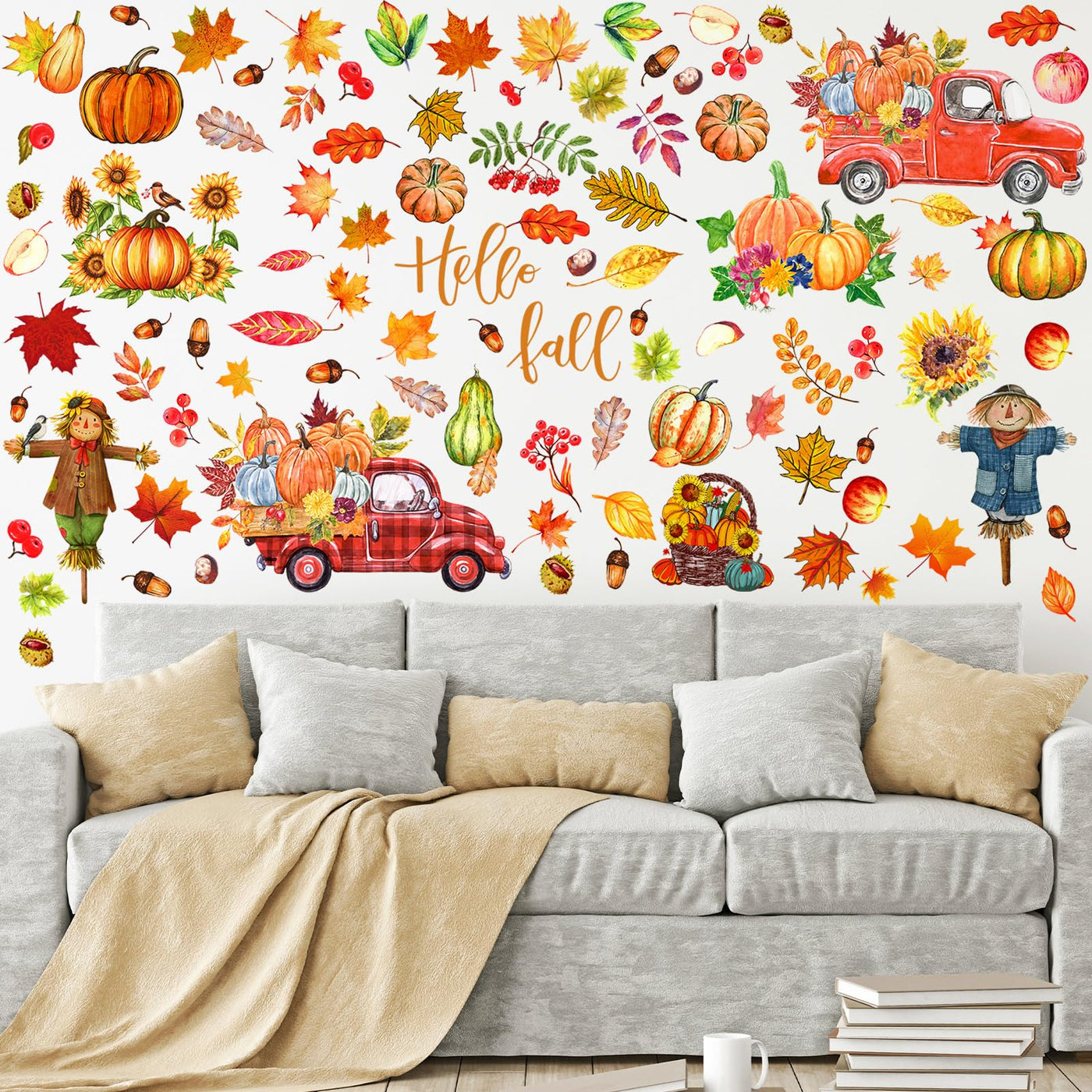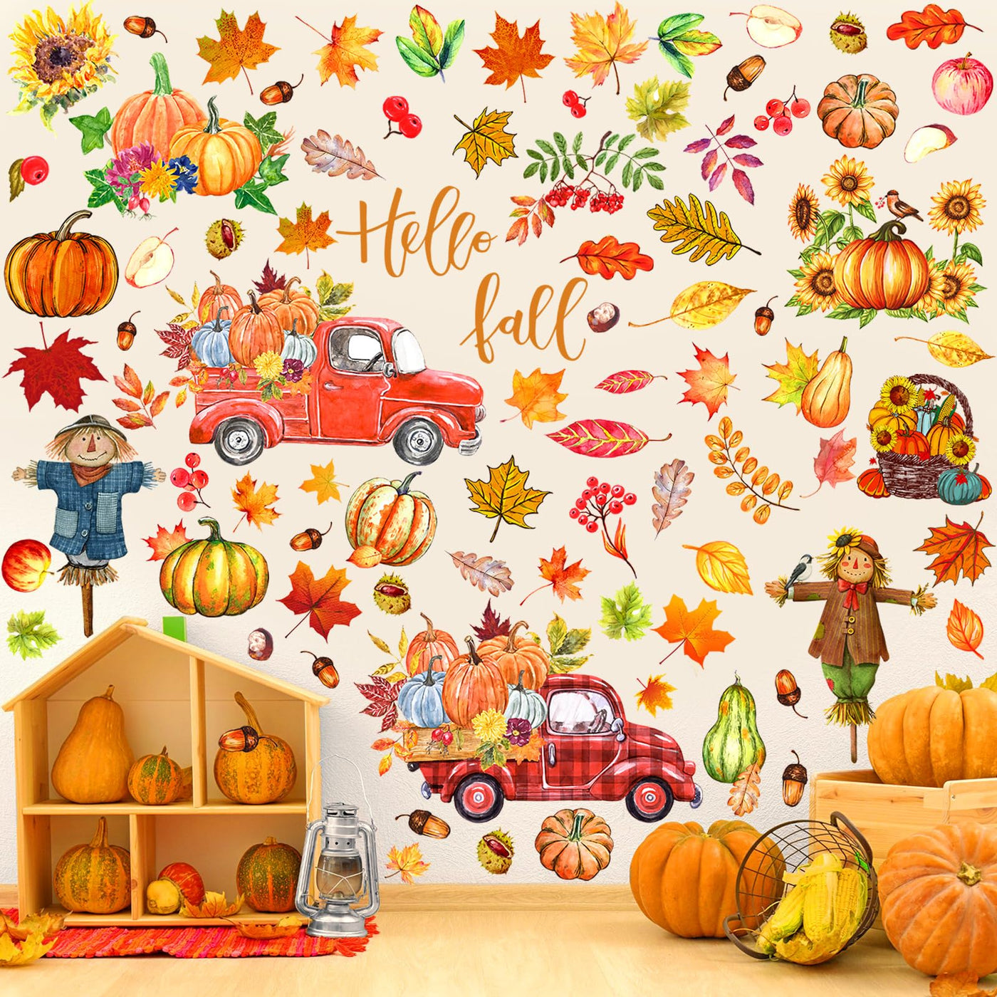 Chivertion 6 Sheets Thanksgiving Fall Wall Sticker Decorations, Thanksgiving Wall Stickers For Kids Home Office Classroom Party