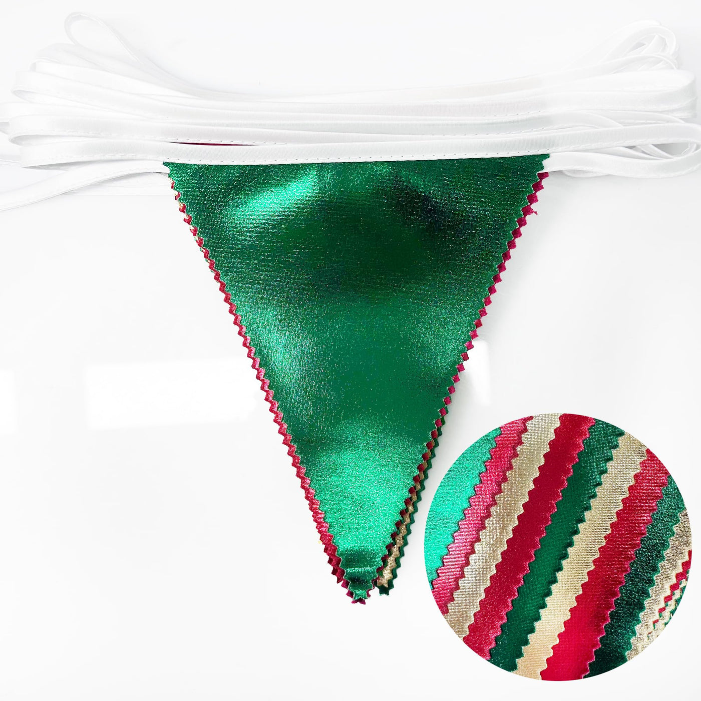 Christmas Party Decorations Triangle Pennant Banner Flag Red Green Gold Metallic Fabric Bunting Garland For Xmas Holiday Wedding