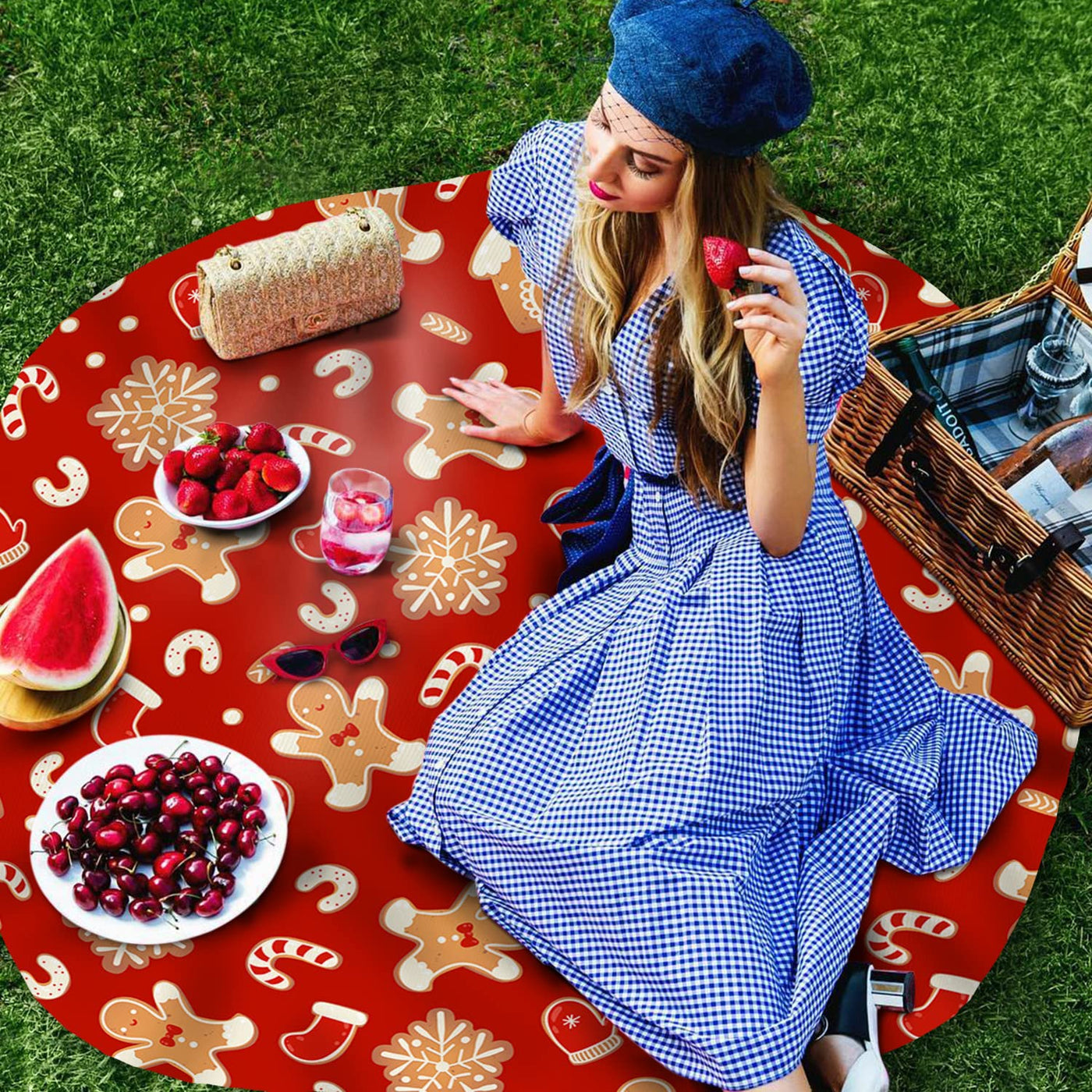 Christmas Round Tablecloth 60 Inch Gingerbread Man Snowflake Waterproof Oil-Proof Table Cloth Candy Cane Glove Kitchen Spillproo
