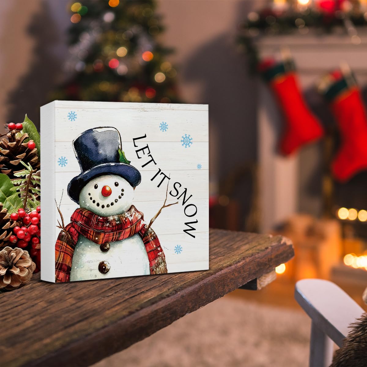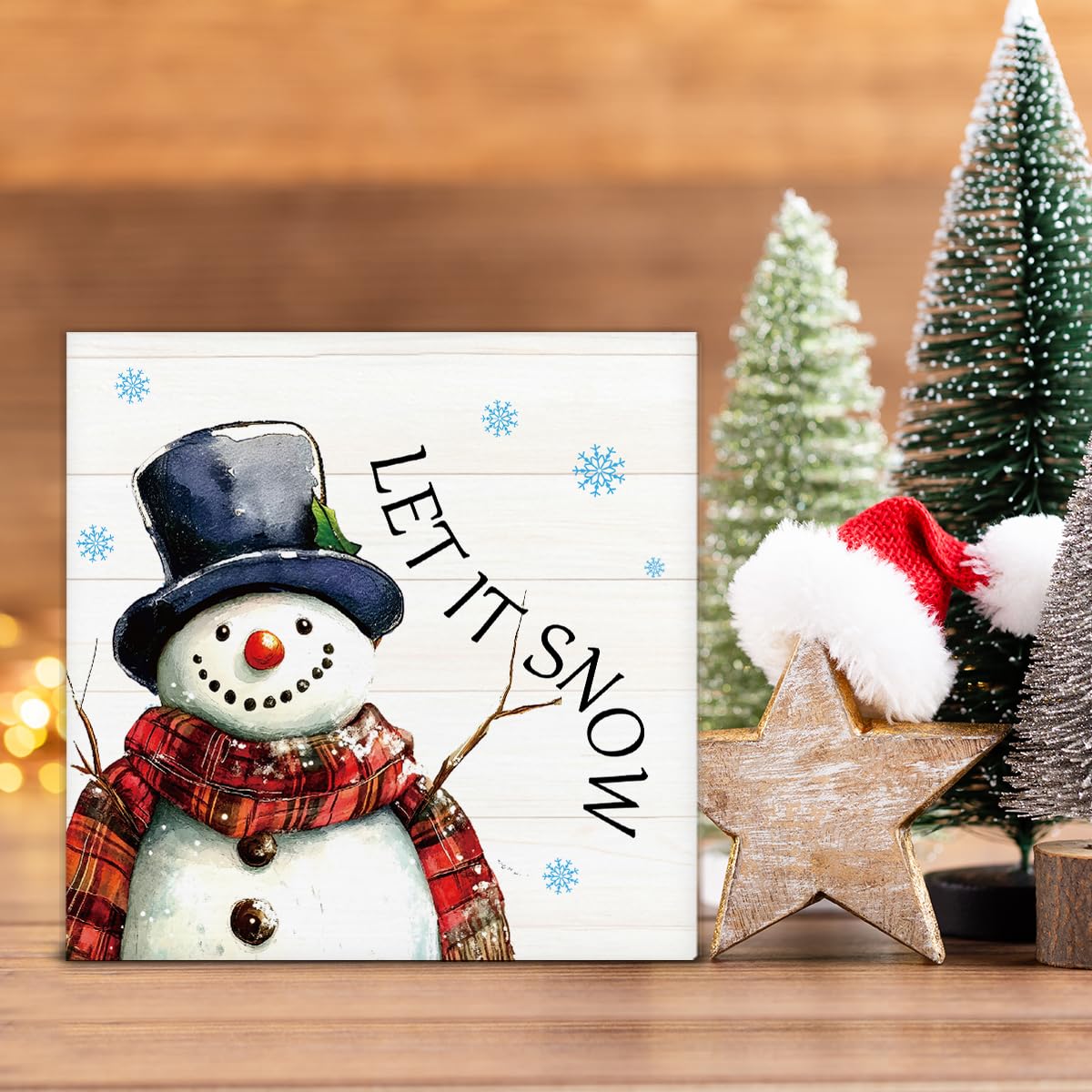 Christmas Sign Decor, Holiday Christmas Decorations, Let It Snow Wooden Sign Rustic Home Shelf Desk Decor 5 x 5 Inches