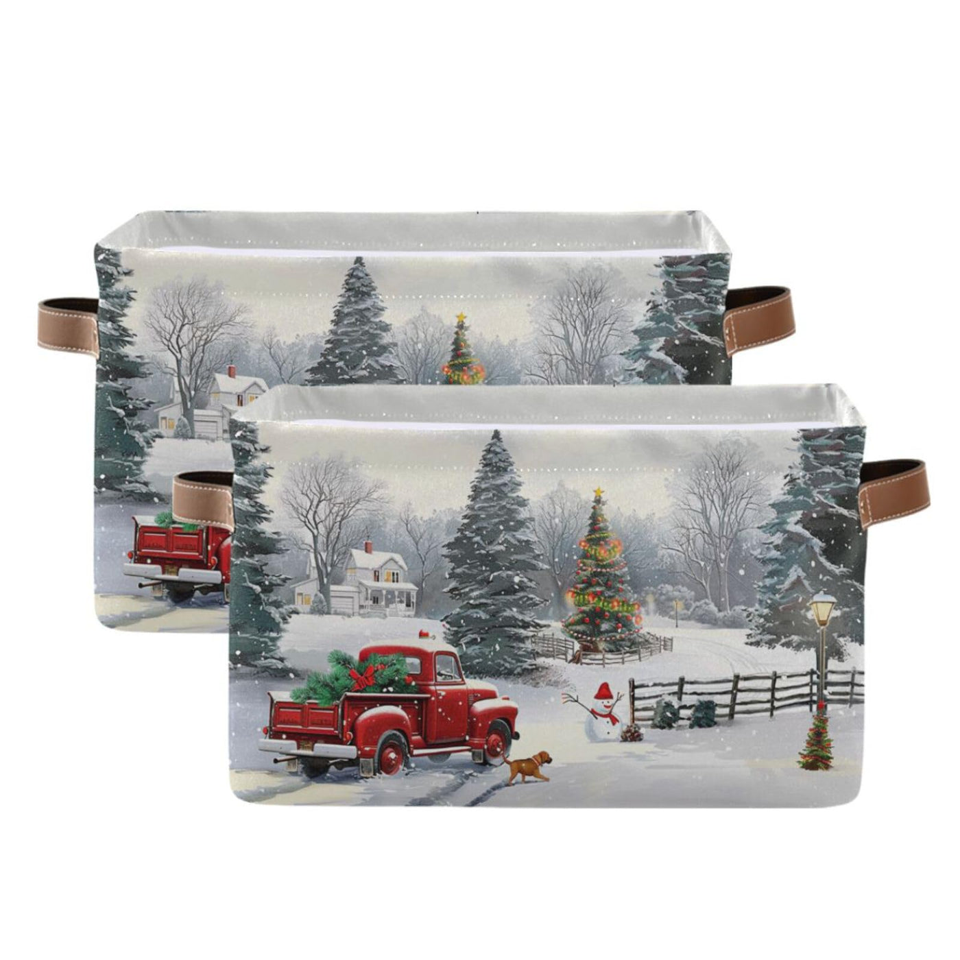 Christmas Tree Red Truck Storage Basket Fabric Laundry Baskets Winter Snowman Snowflake Golden Retriever Dog Storage Boxes Organ
