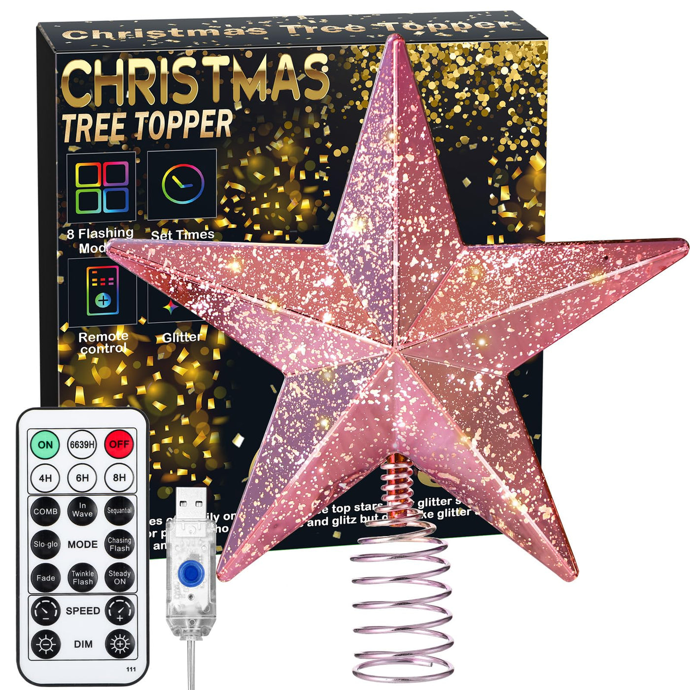 Christmas Tree Star Topper with Lights, 8.5-Inch Light-Up Christmas Tree Topper with Remote Control, 4 Brightness Levels & 8 Lig