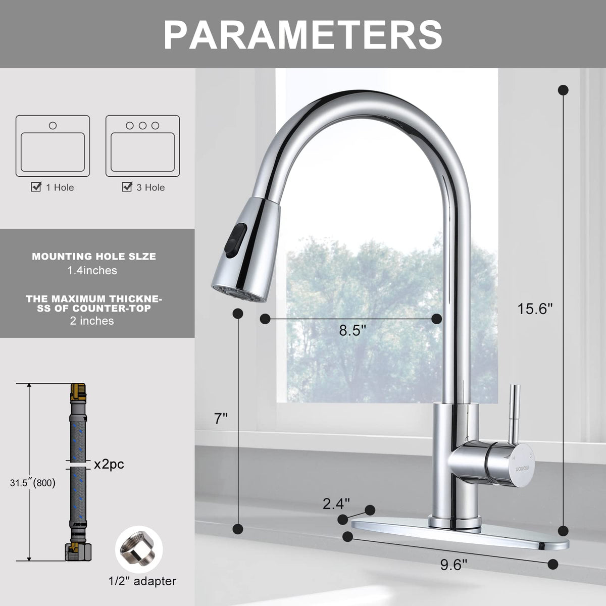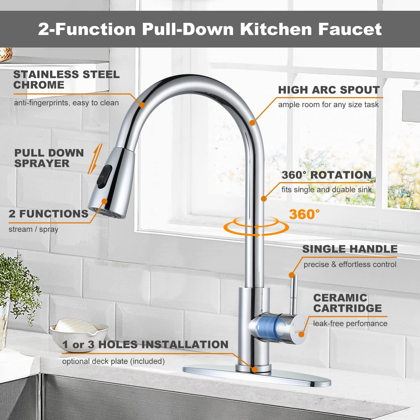Chrome Kitchen Faucet with Sprayer WOWOW Pull Down Kitchen Sink Faucet Stainless Steel Utility Sink Faucet with Deck Plate Kitchen Tap for RV Laundry Bar
