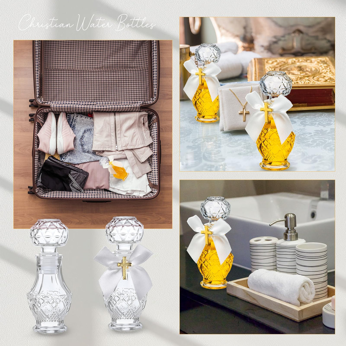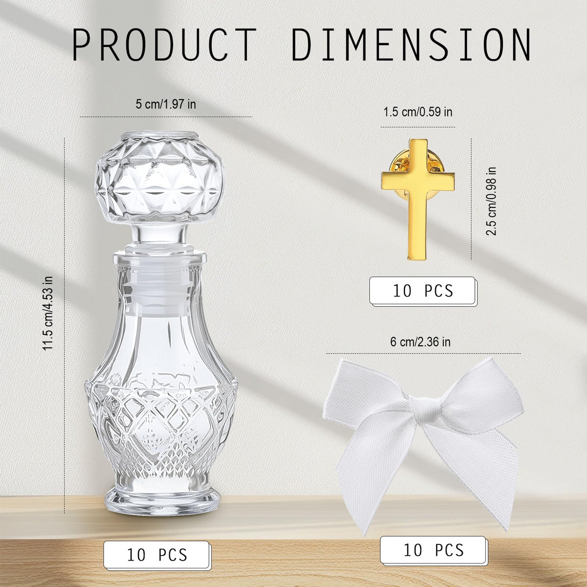 Chuangdi 10 Set Holy Catholic Water Bottles 50ml Christian Water Container Empty Catholic Glass Bottle with Cross Lapel Pin Ribb