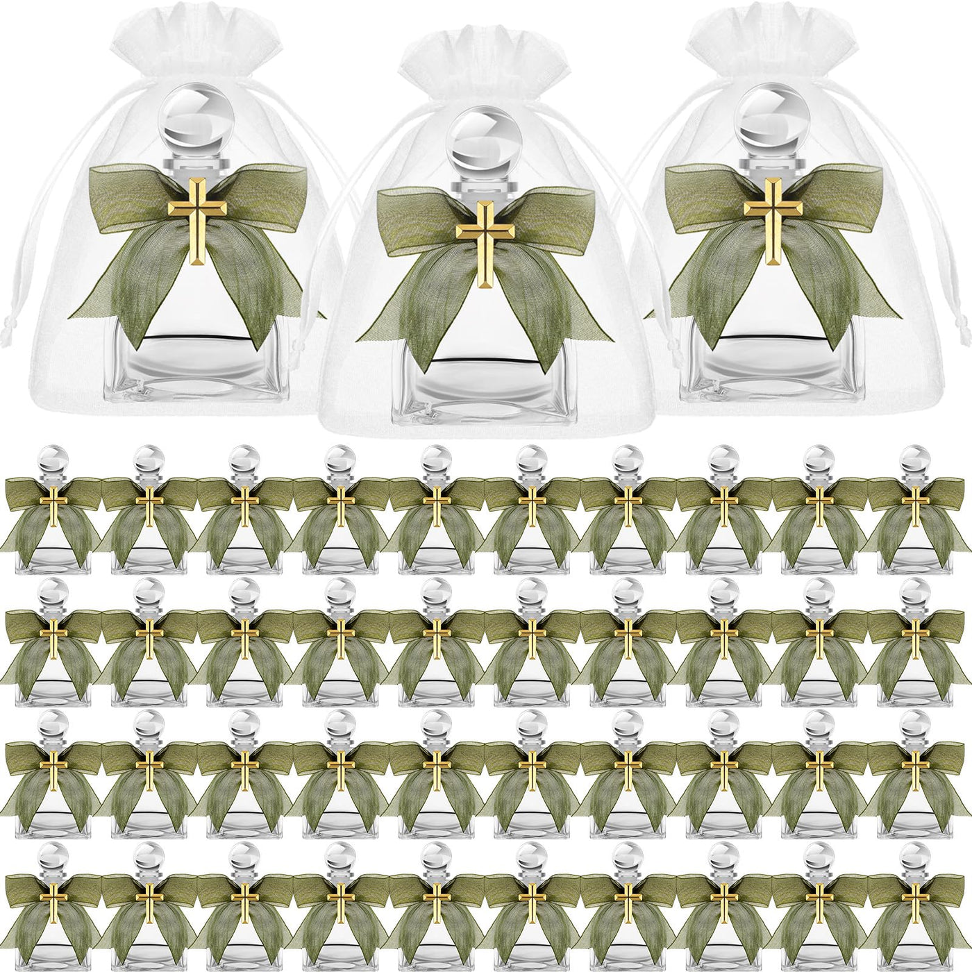 Chuangdi 48 Set Holy Water Bottles Catholic Clear Holy Water Container 50ml Christian Glass Bottle with Cross Lapel Pin and Lace