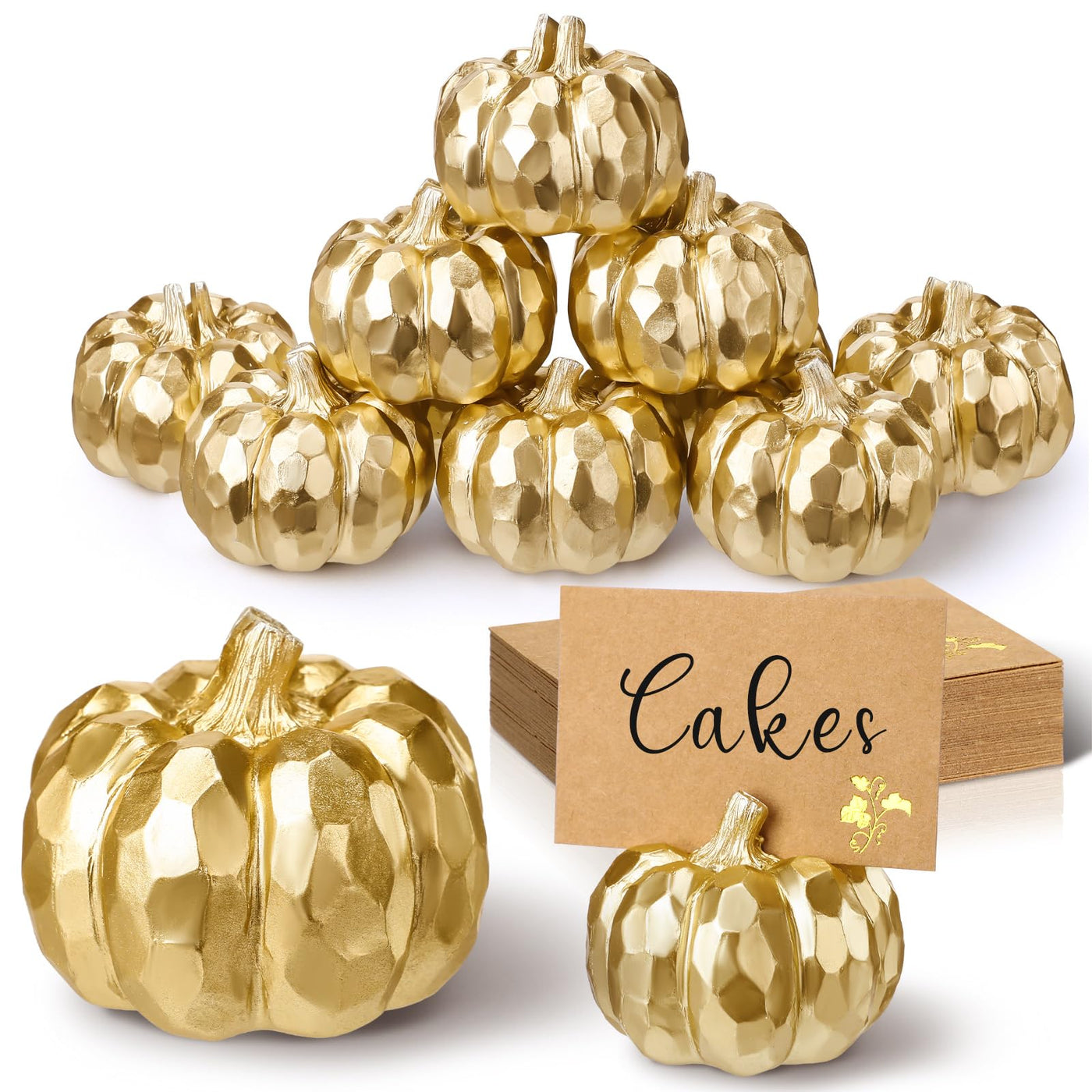 Chunful 10 Set Thanksgiving Mini Gold Pumpkin Place Card Holder Resin Fall Pumpkin Decoration Thanksgiving Table Card Holder Fal