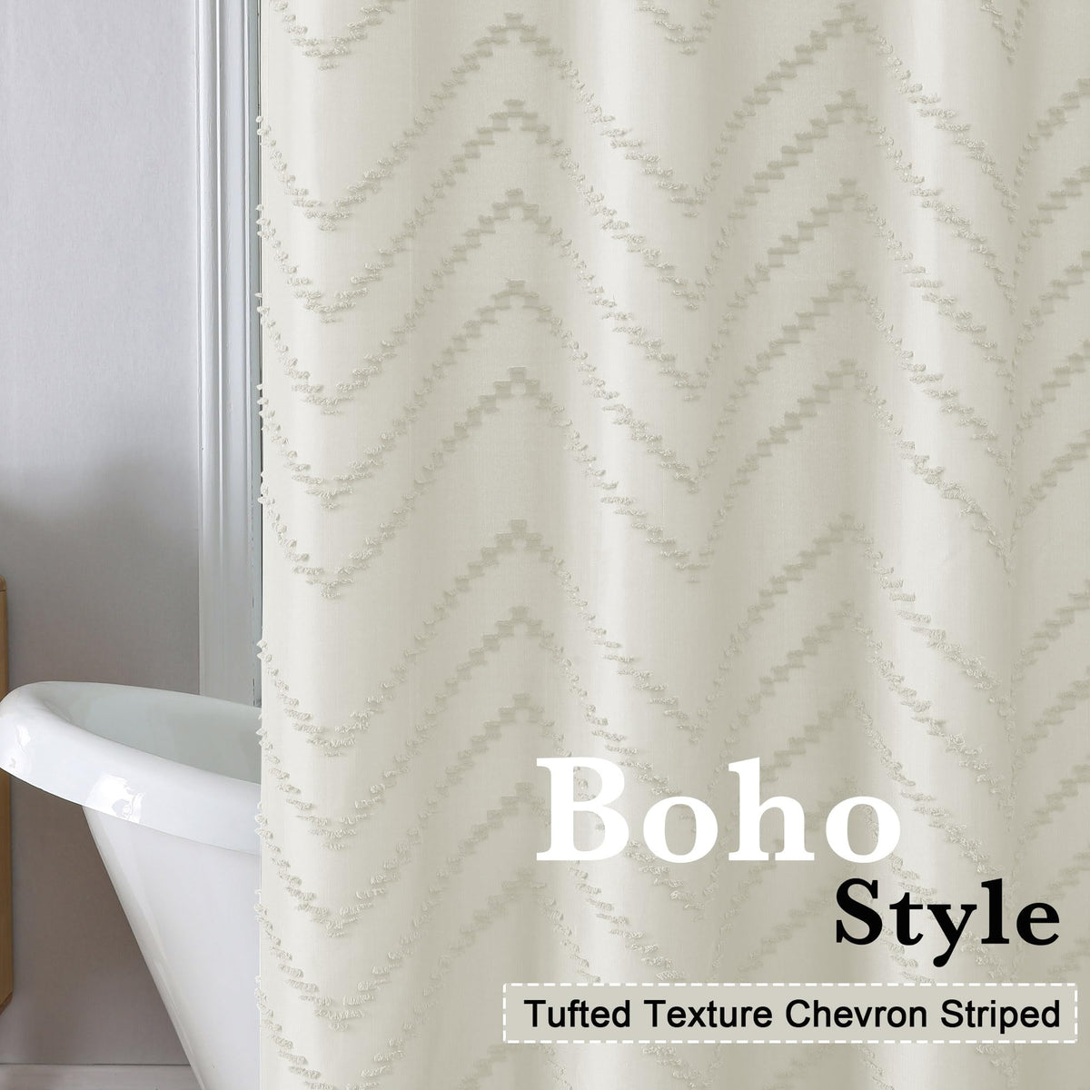 Chyhomenyc Chevron Beige Boho Shower Curtain For Bathroom, Fabric Shower Curtain Chic Tufted Textured Chevron Striped Minimalist