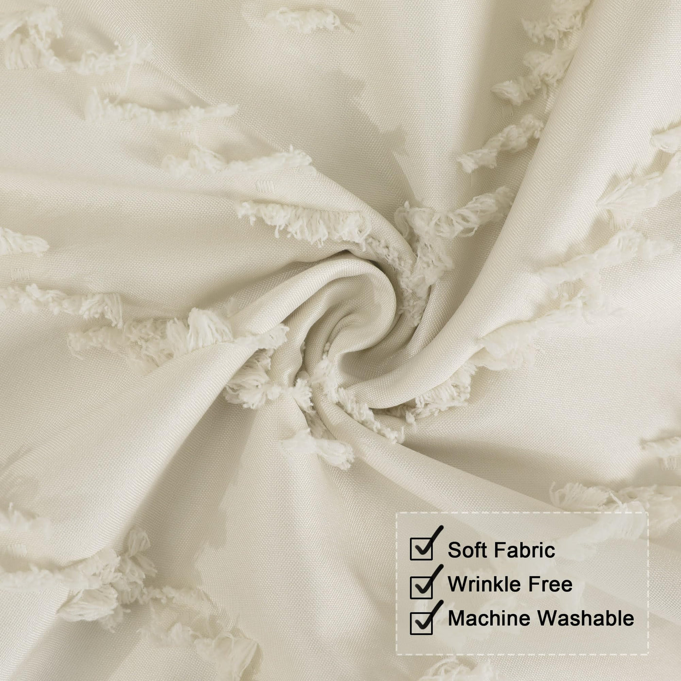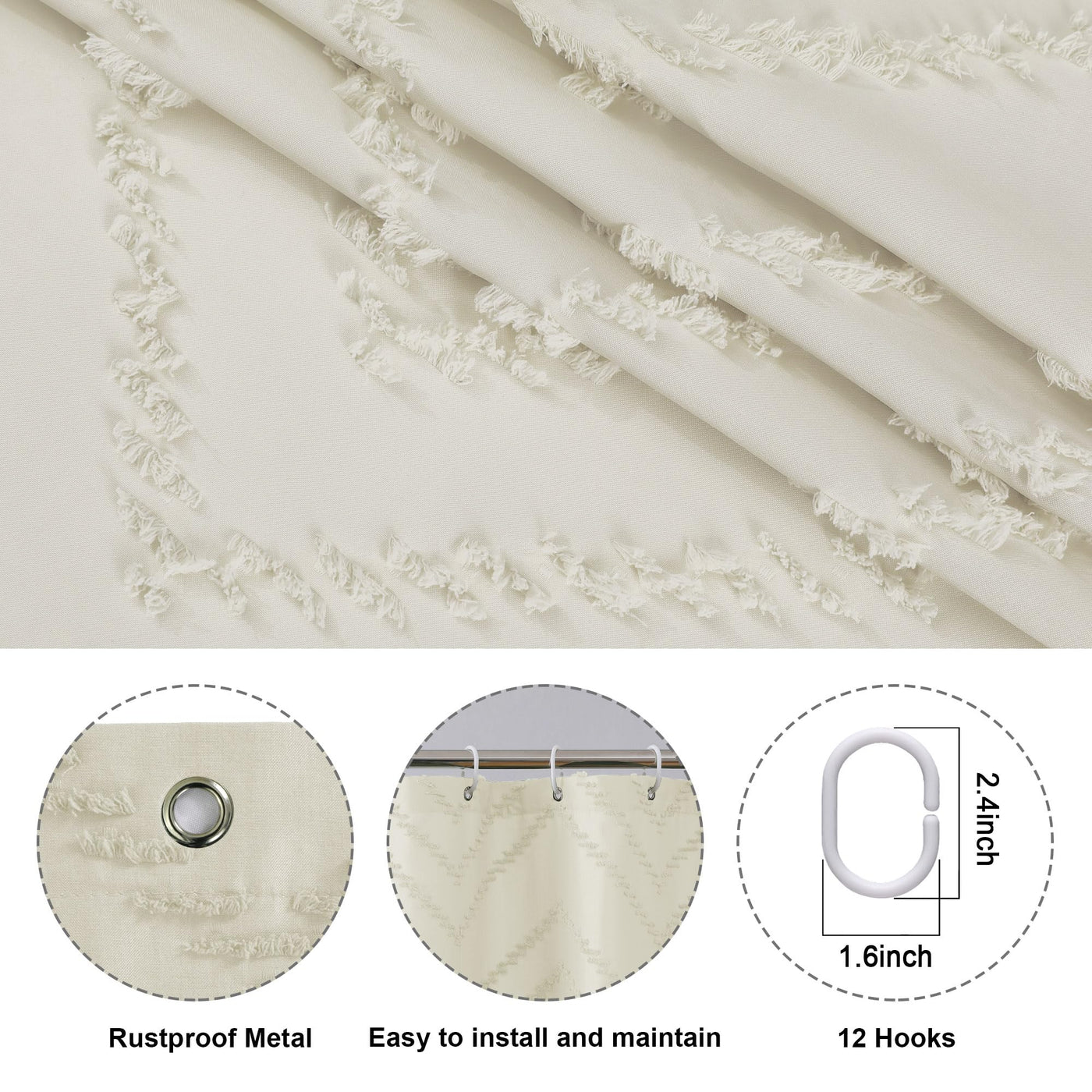 • Q: What is the design style of the shower curtain? A: This shower curtain features a chic, tufted chevron striped design, adding a modern and boho-inspired elegance to your bathroom.