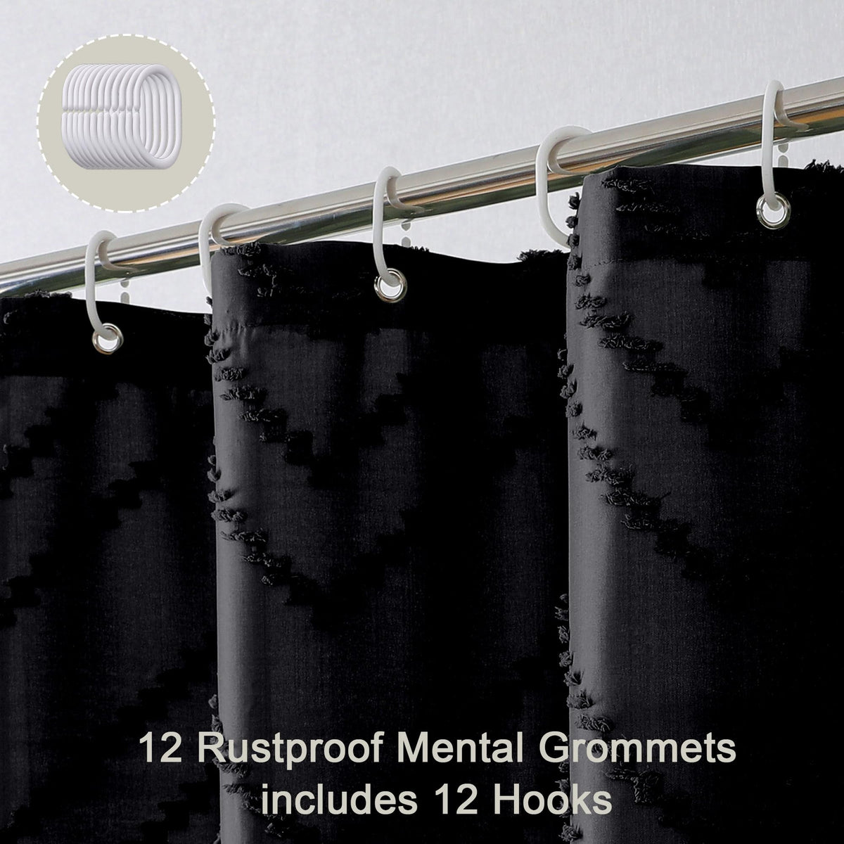Chyhomenyc Chevron Extra Long Black Boho Shower Curtain Set 72X78 Inches, Fabric Shower Curtain Modern Farmhouse Chic Textured T