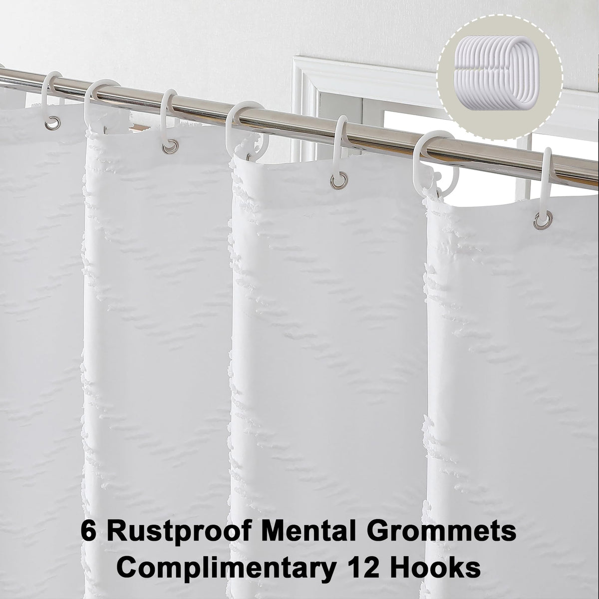 • Q: Does the shower curtain come with hooks? A: Yes, the shower curtain set includes 12 C-Type hooks for easy hanging.
