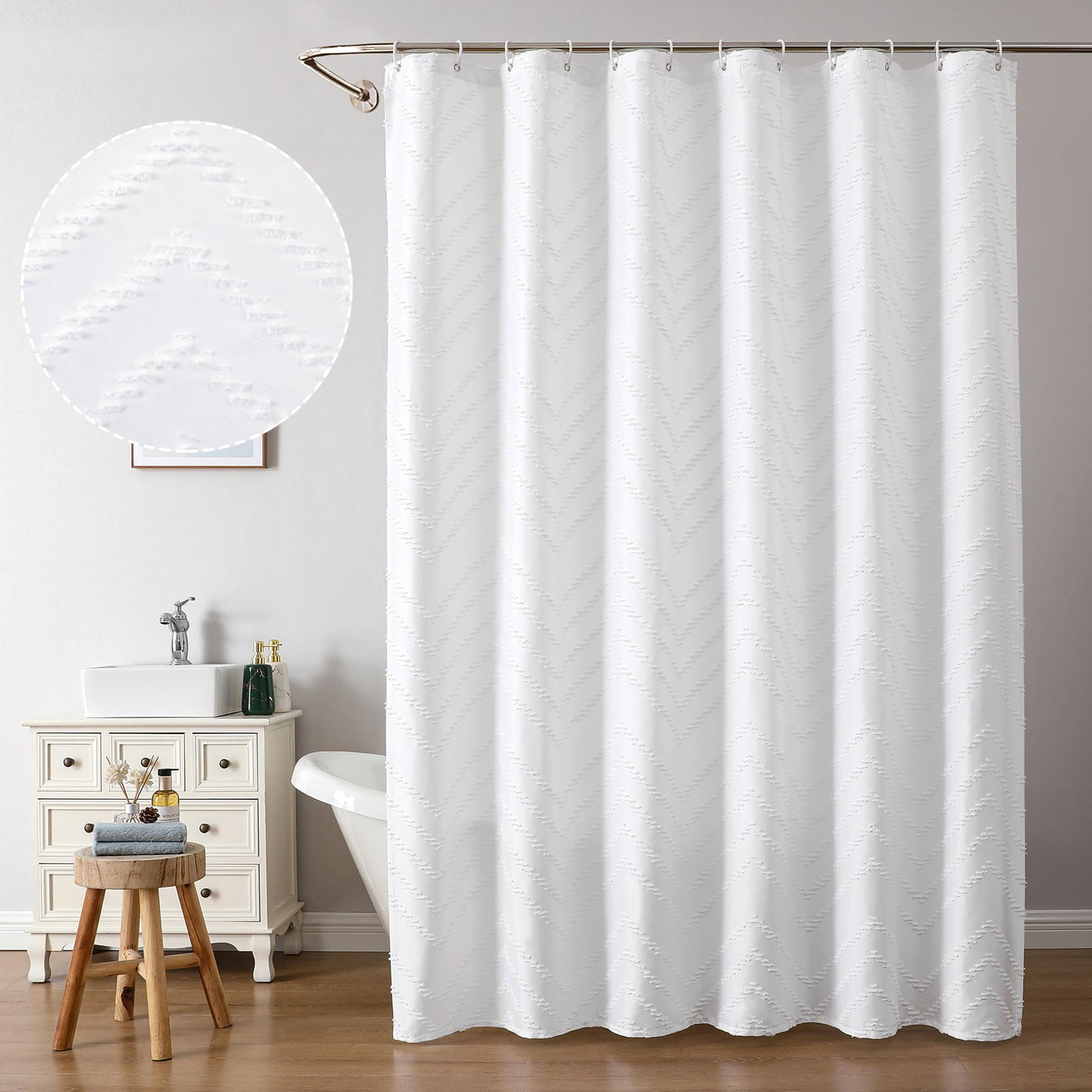 Chyhomenyc Chevron White Fabric Shower Curtain Set 72X84 Inches, Extra Long Farmhouse Boho Shower Curtain Modern Chic Textured T