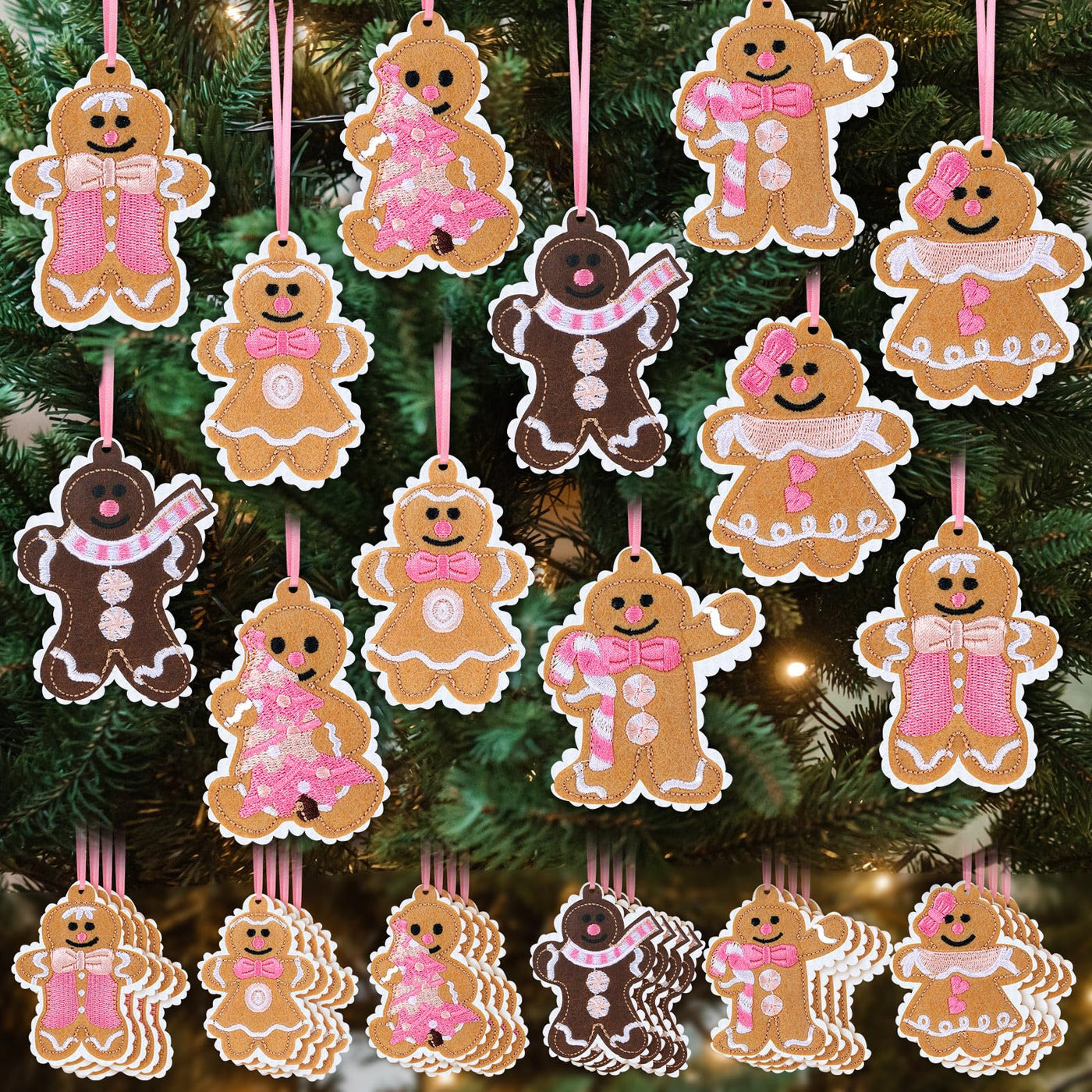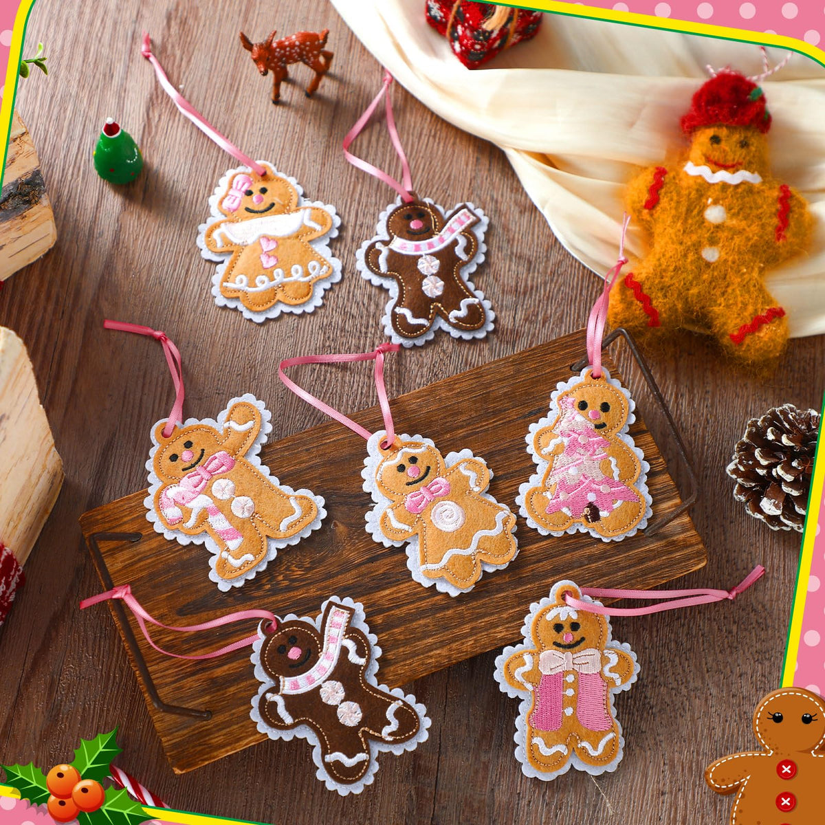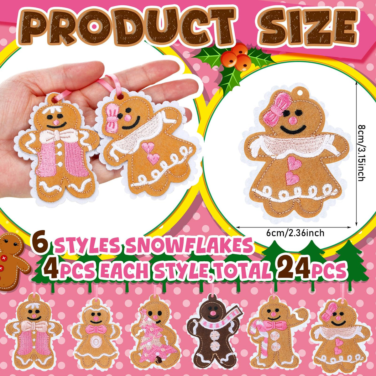 Civaner 24 Pcs Pink Gingerbread Christmas Embroidery Ornaments Felt Embroidery Rustic Christmas Hanging Ornaments Pendants for X