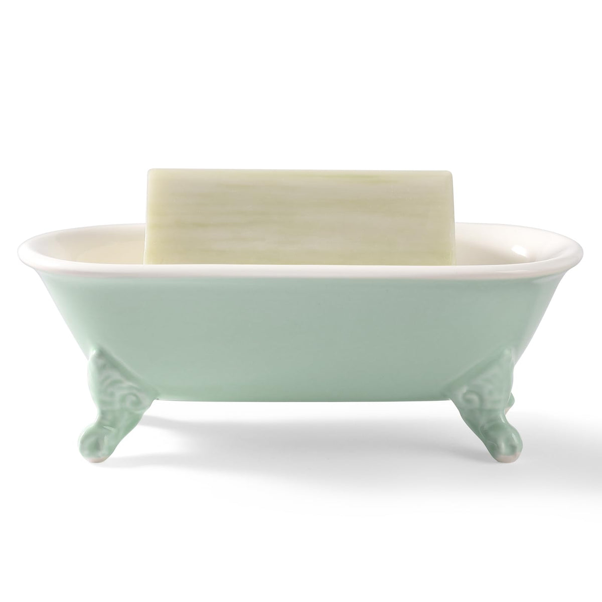 Clawfoot Bathtub Decortative Ceramic Soap Dish Holder Shower Bar Soap Tray For Bathroom Or Kitchen,1 Pack (Bright Teal)