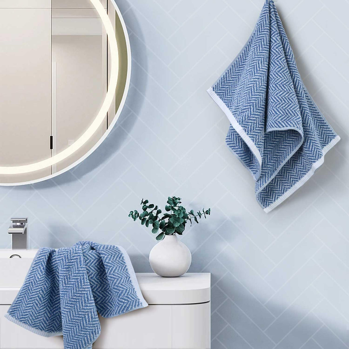 Cleanbear Hand Towels For Bathroom, 4-Pack Cotton Hand Towels With Herringbone Stripes, Ultra Soft And Highly Absorbent, Lightwe