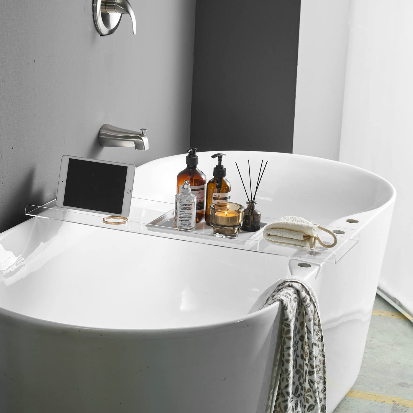 - Q: Can I use the tray for my tablet while bathing? A: Yes, the tray includes a holder designed to secure tablets, making it perfect for enjoying media while you bathe.