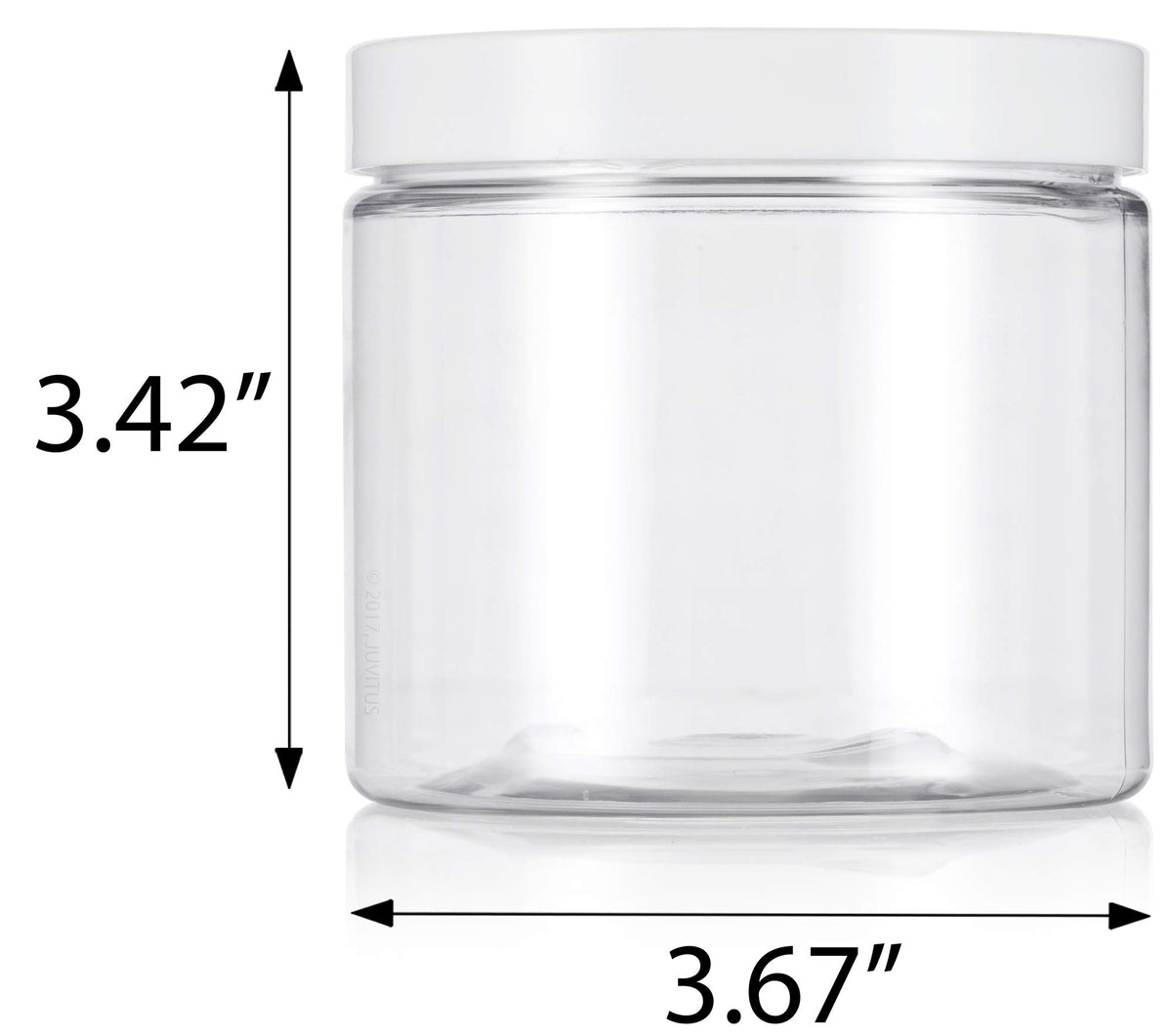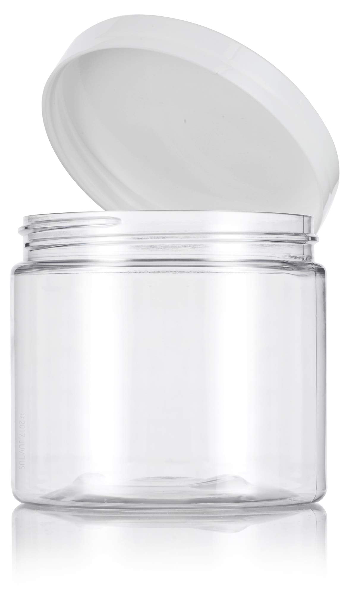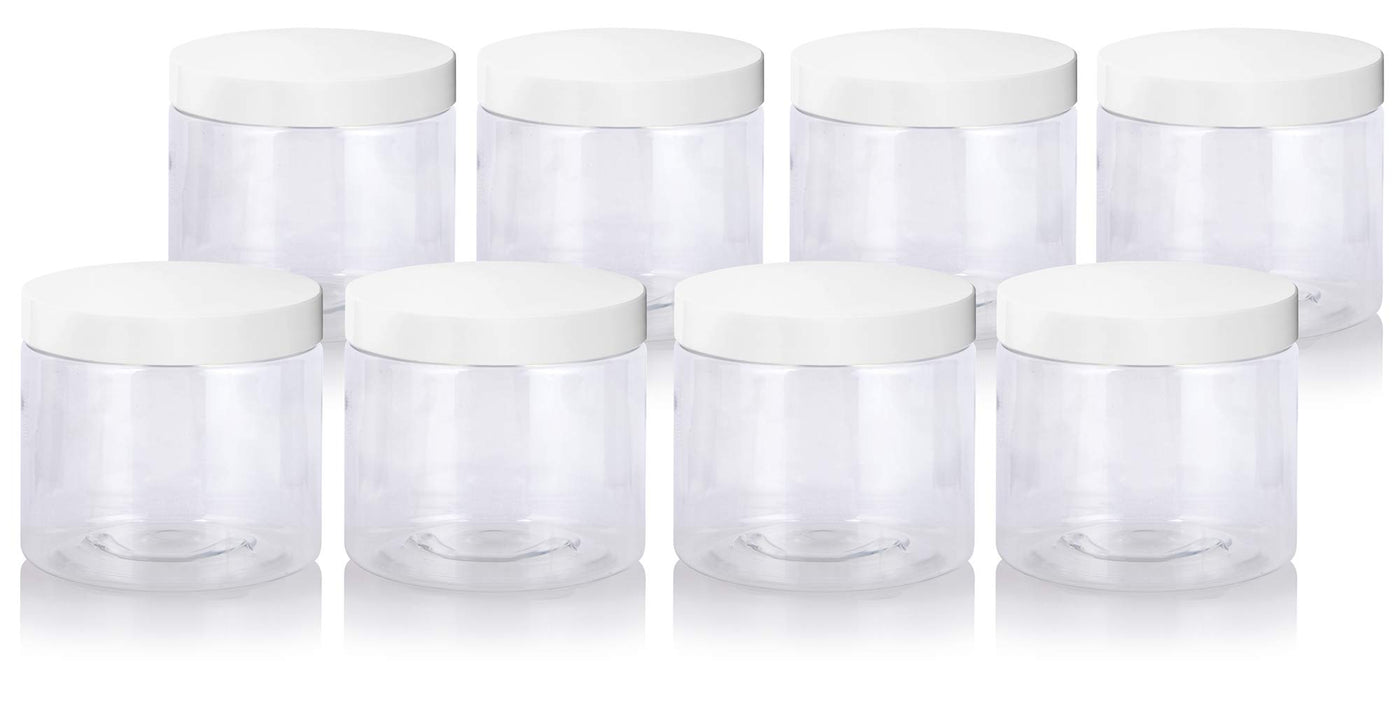 Clear Large 16 Oz Pet Plastic (Bpa Free) Refillable Jar With White Lids - (8 Pack)