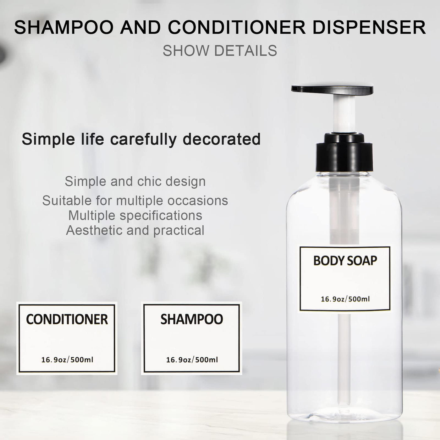 Clear Shampoo And Conditioner Bottles,Yeeco Shampoo Pump Bottle Shampoo Bottles Dispenser With Waterproof Labels 16.9Oz/500Ml 3