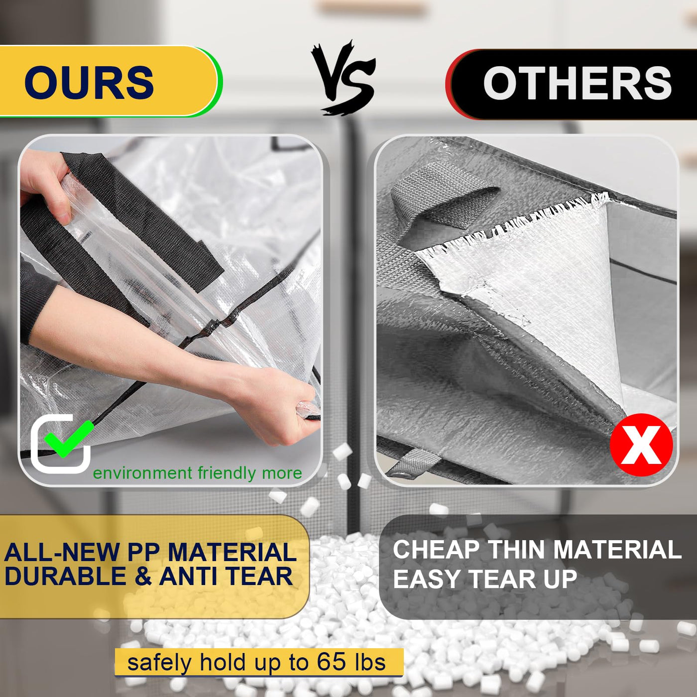 Clear Storage Bags With Zipper, 2 Pack Large Moving Bags Heavy Duty Extra Large, Plastic Storage Totes For Clothes, College Dorm