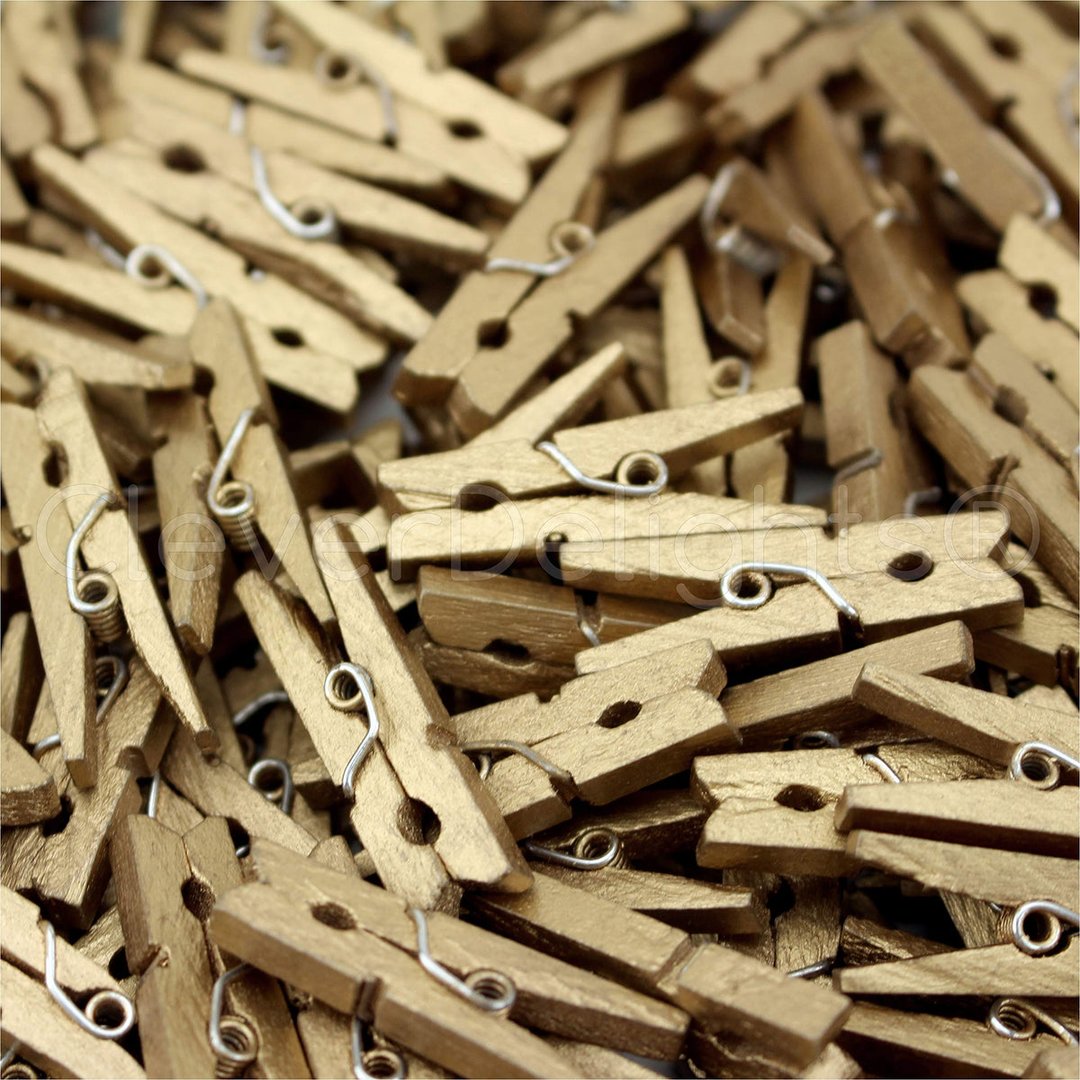 Cleverdelights 1 1/8'' Mini Wood Clothespins - Metallic Gold - 100 Pack