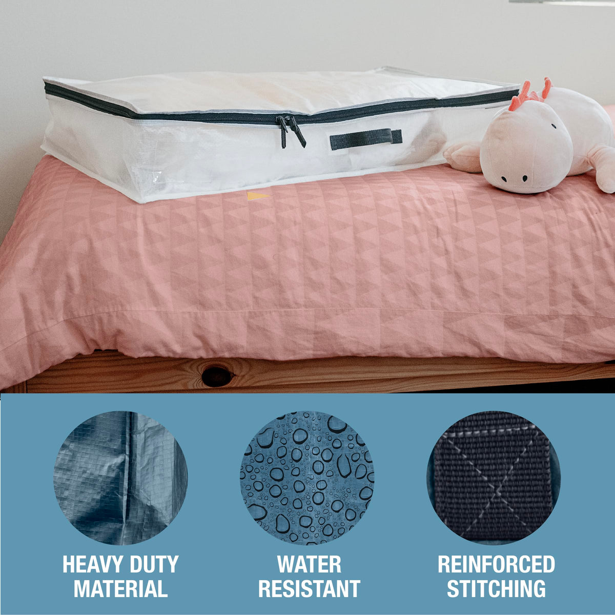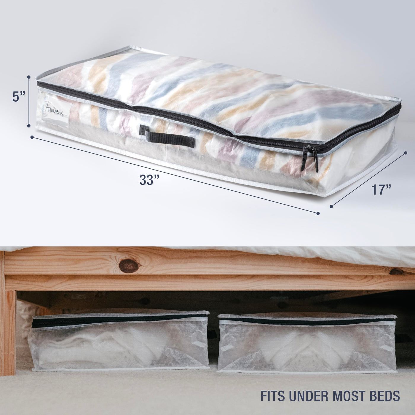• Q: Is this storage bag suitable for under-bed storage? A: Yes, the bag is designed specifically for under-bed storage and fits well under beds that are 6 inches off the floor or higher.