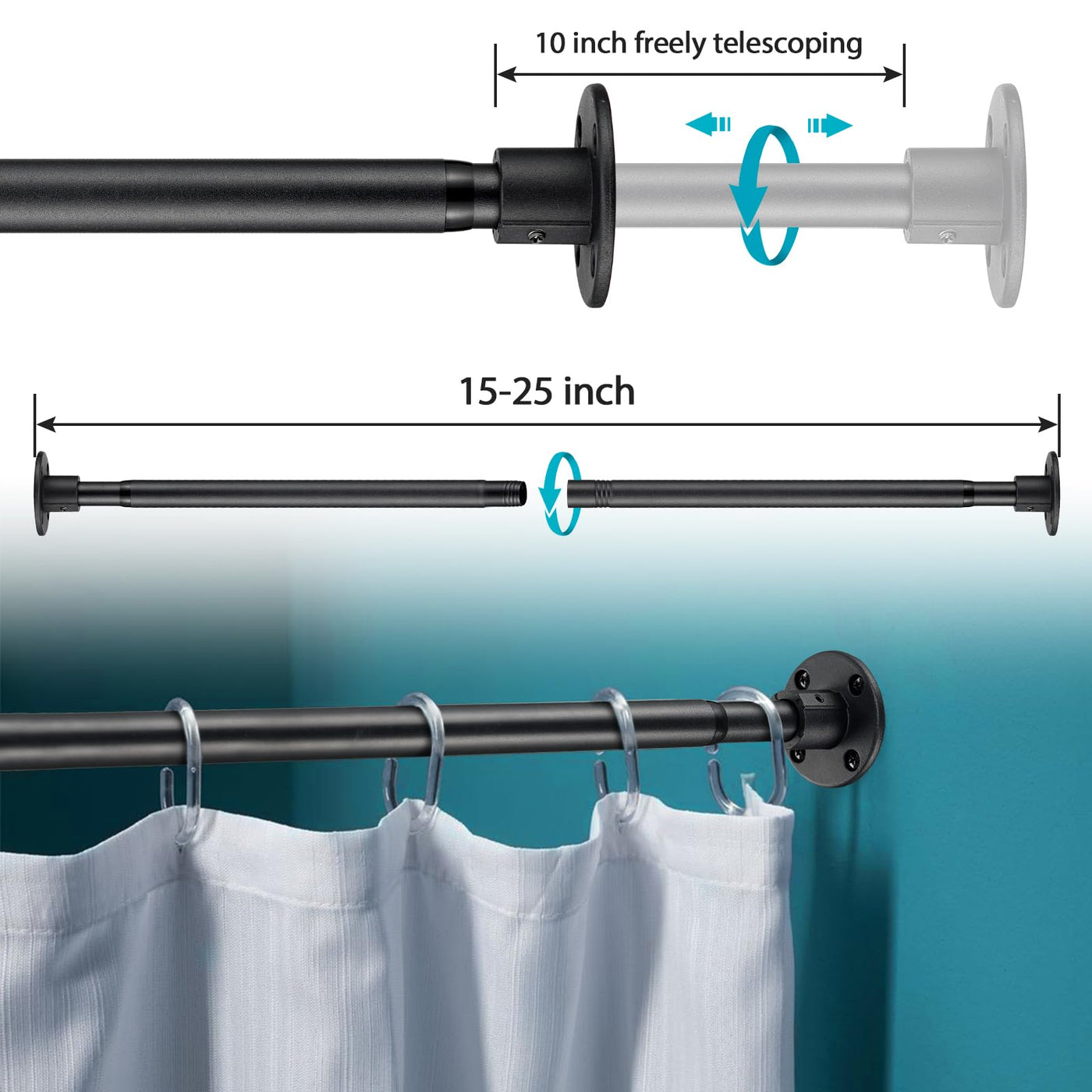 Closet Rods For Hanging Clothes, 15-25 Inch Adjustable Size, Screw Fixing Connection, For Closet Wardrobes Laundry Rv, Black