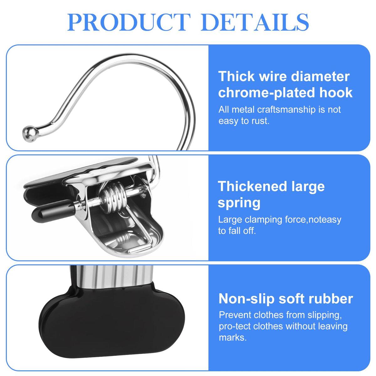 • Q: Is the clip head adjustable? A: Yes, the metal clip head can rotate 360°, providing convenience and versatility when hanging items.