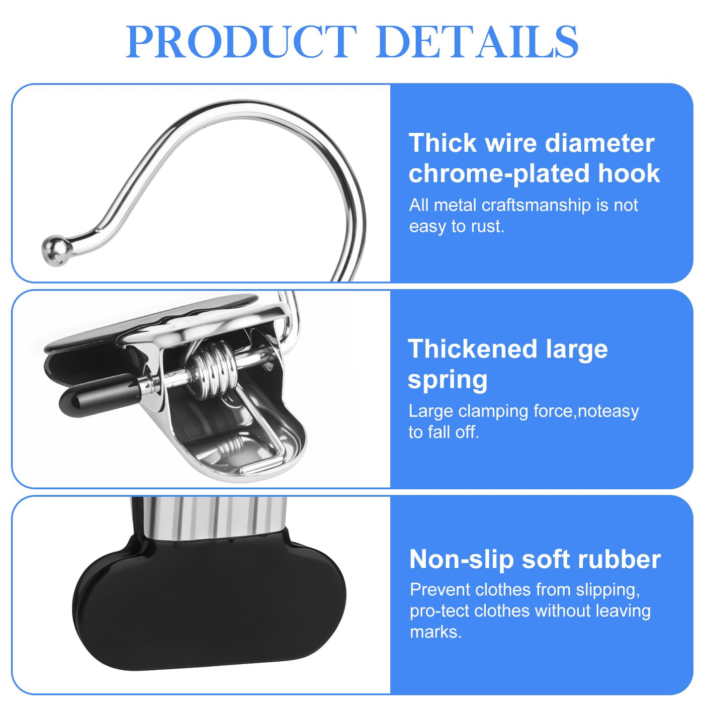 • Q: What materials are the clothes hanger clips made of? A: The clothes hanger clips are made of high-quality stainless steel, which makes them durable and rust-resistant.