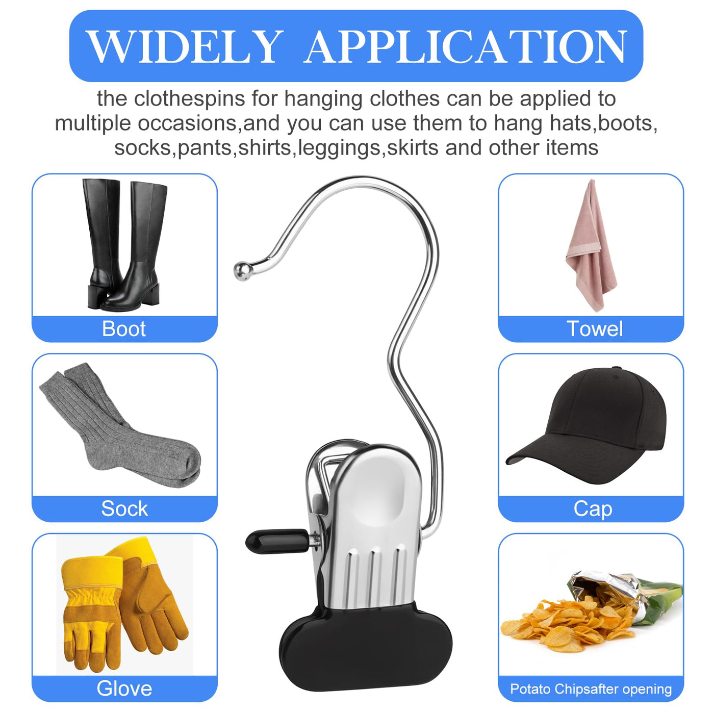 • Q: What items can I hang with these clips? A: You can use these clips to hang clothes, pants, towels, bags, and other items that need organizing.