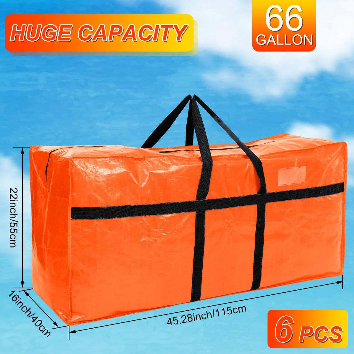 Clysee 6 Pcs 66 Gallon Large Moving Bags with Zipper and Handles Foldable Storage Duffle Bags Heavy Duty Extra Large Totes for C