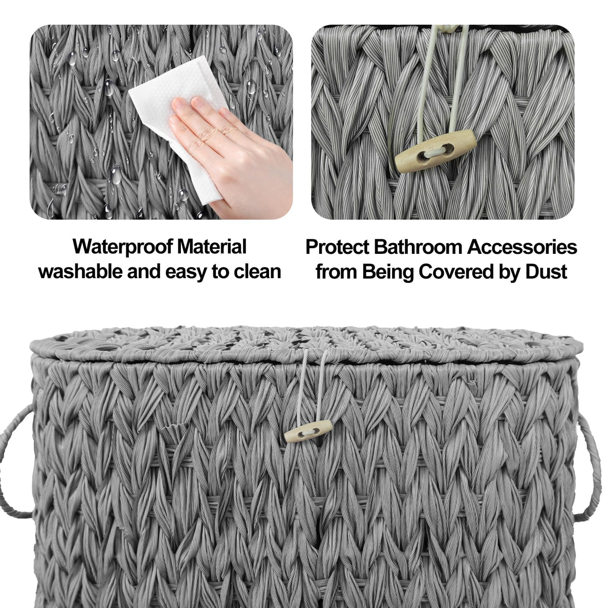 Coeusy Toilet Paper Basket,Wicker Toilet Paper Storage With Lid,Free Standing,Decorative Bathroom Toilet Paper Holder Stand,Narr