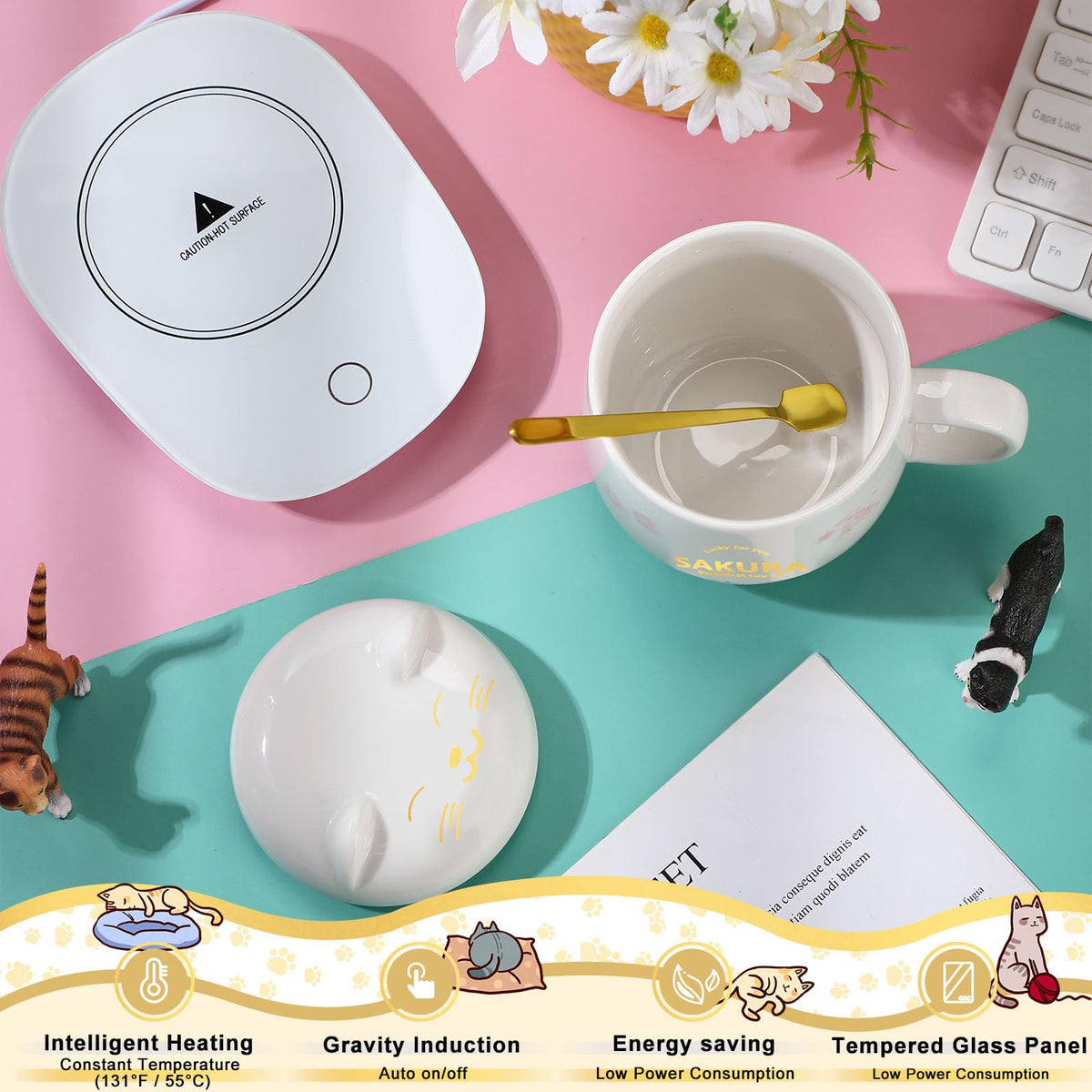 Coffee Cup Warmer Coffee Warmer With Mug For Women Electric Coffee Mug Heater Temperature Control Ceramic Cute Cat Smart Coffee