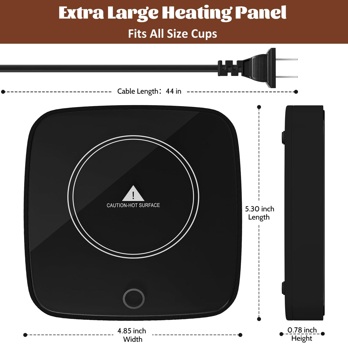 • Q: How do I clean the coffee cup warmer? A: The coffee warmer has a waterproof surface that is easy to clean. Simply wipe it down with a damp cloth to remove any spills or stains.