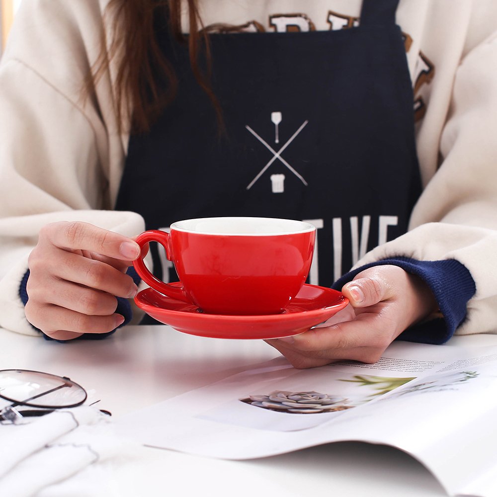 Coffeezone Manual Brew Coffee Cup And Saucer, Latte Art Cappuccino For Coffee Shop And Barista (Glossy Red, 8.5 Oz)