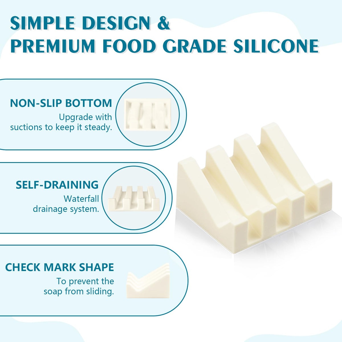 Coipdfty Soap Dishes, Silicone Shower Soap Dish With Drianage, Bar Soap Holder & Saver Waterfall Self-Draining To Keep Your Bar