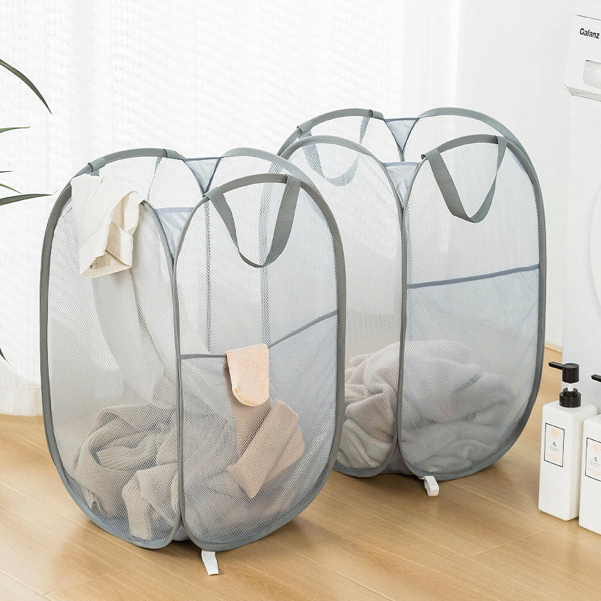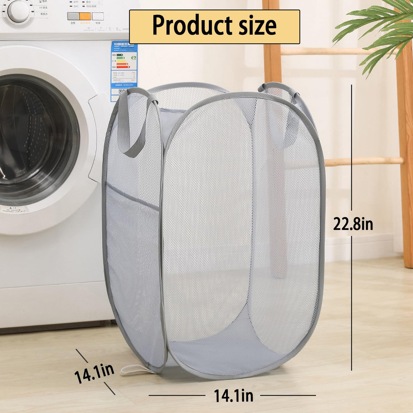 Collapsible Mesh Laundry Basket,Pop Up Laundry Hamper-Easy Storage, Ideal For Home And Travel Use (2 Light Gray)