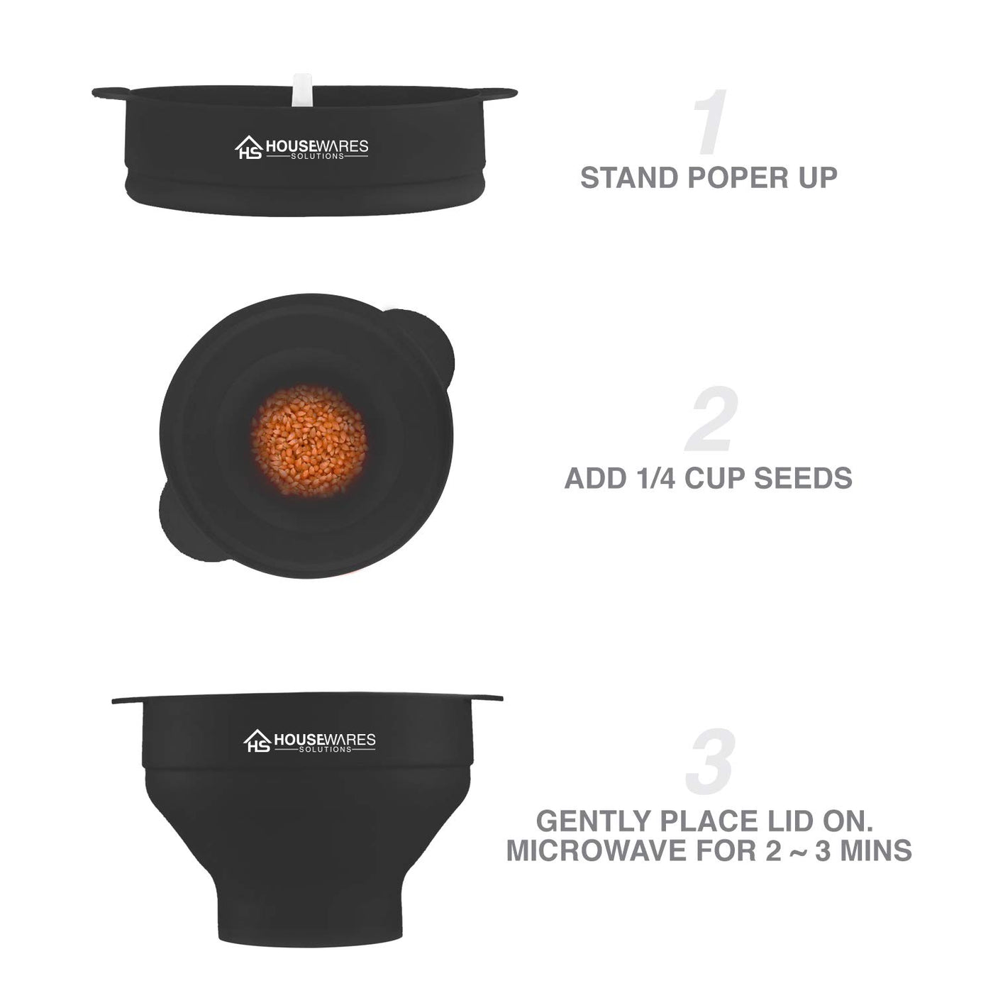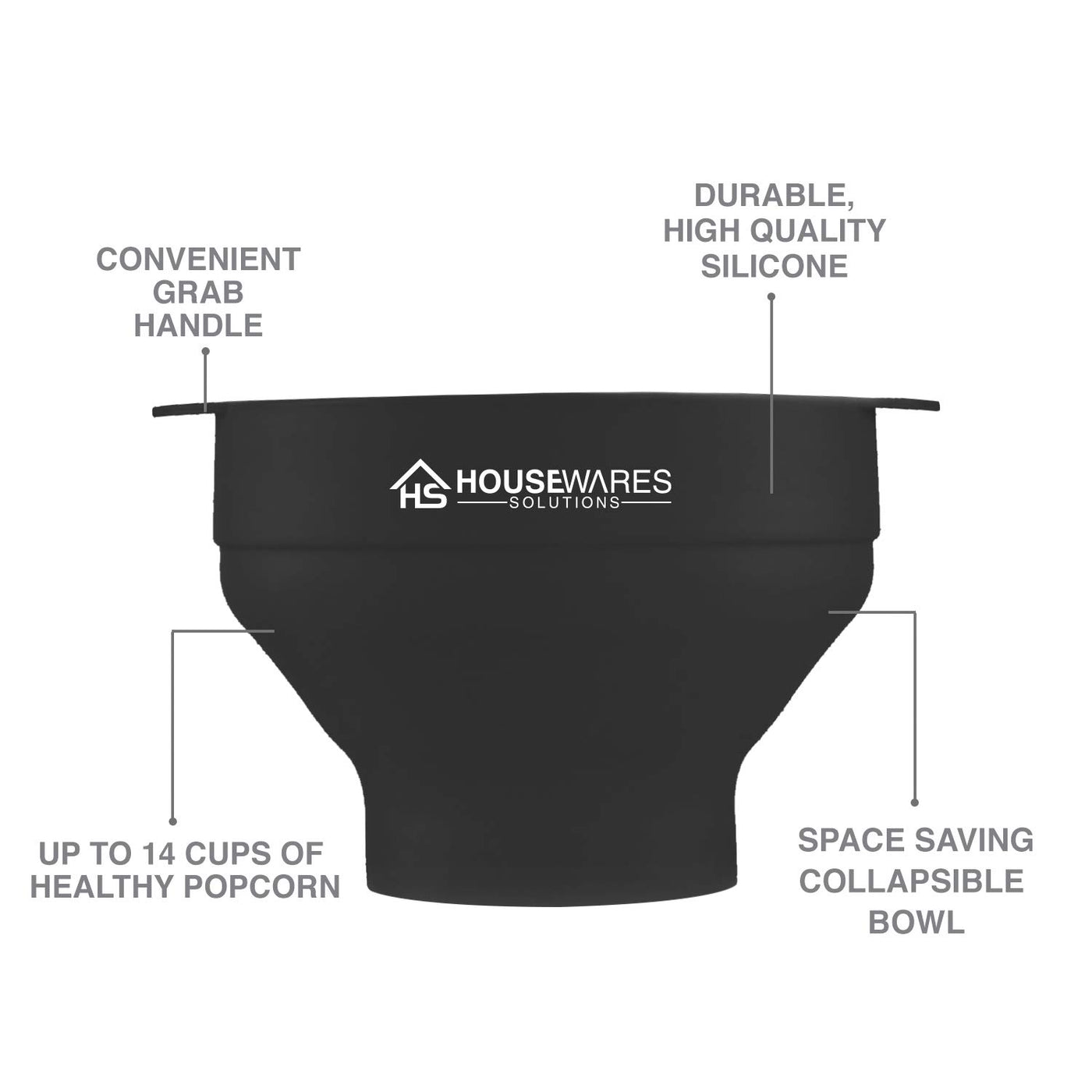 Collapsible Silicone Microwave Hot Air Popcorn Popper Bowl With Lid And Handles (Black)
