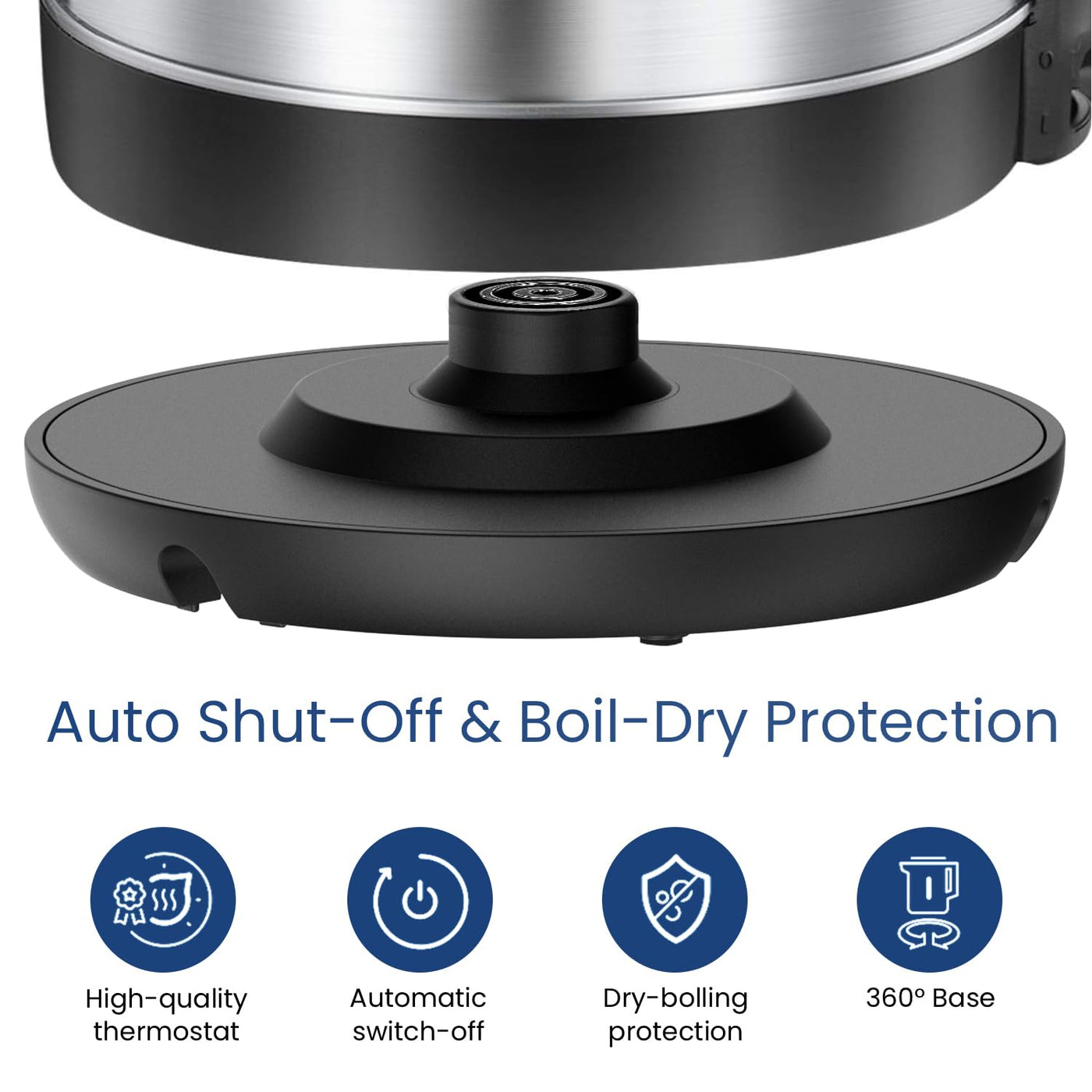 - Q: Does the kettle have safety features? A: Yes, it features auto shut-off when overheating and boil-dry protection that turns off the heating element when the kettle is empty.