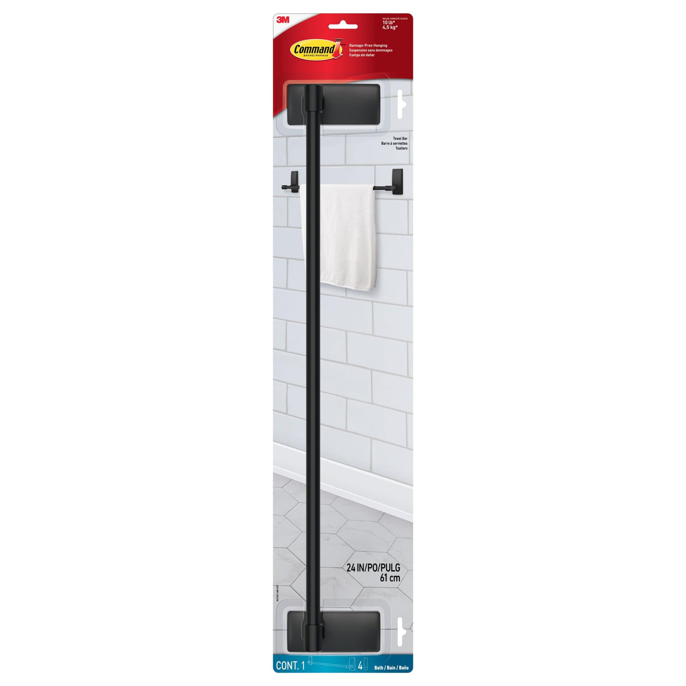 • Q: What is the length of the Command Bath Towel Bar? A: The Command Bath Towel Bar has a length of 24 inches.