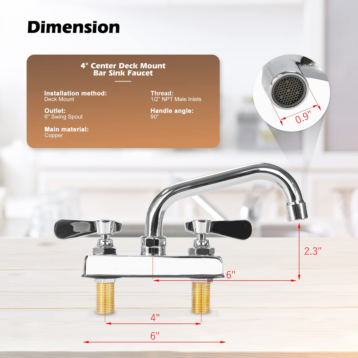 Commercial Bar Sink Faucet 4 Inch Center Deck Mount Bar Sink Faucet 2 Hole Brass Constructed & Chrome Polished With 6'' Swivel S