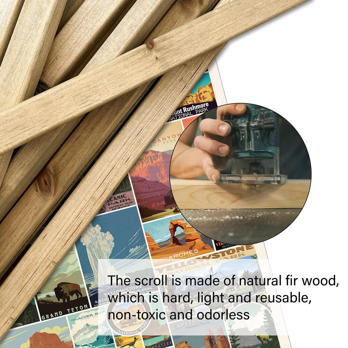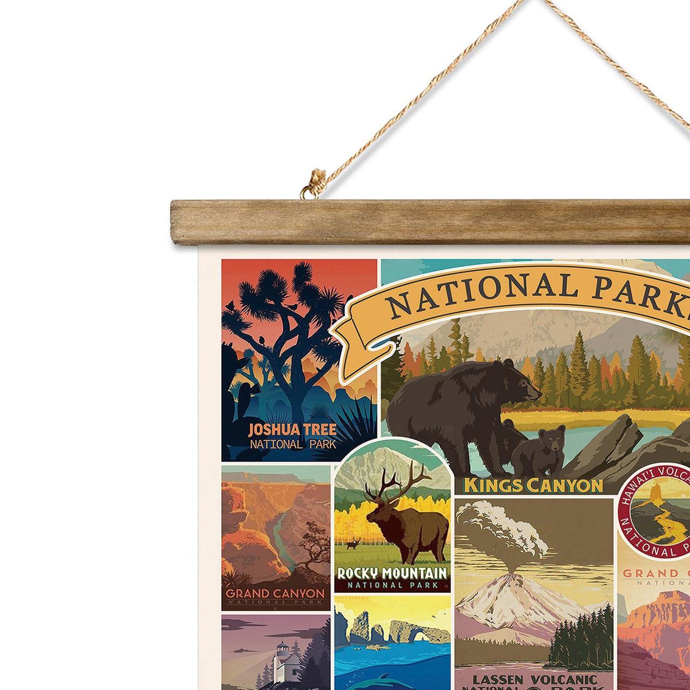 - Q: What size is the Comprehensive National Parks Display poster? A: The specific dimensions are not provided, but it is designed to be a noticeable statement piece suitable for various wall sizes.