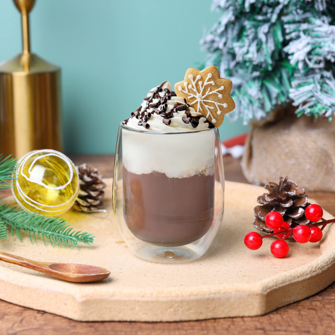 - Q: What material are the ComSaf double walled glass coffee mugs made from? A: The ComSaf mugs are hand blown from lead-free high borosilicate glass, which is non-toxic and odorless.