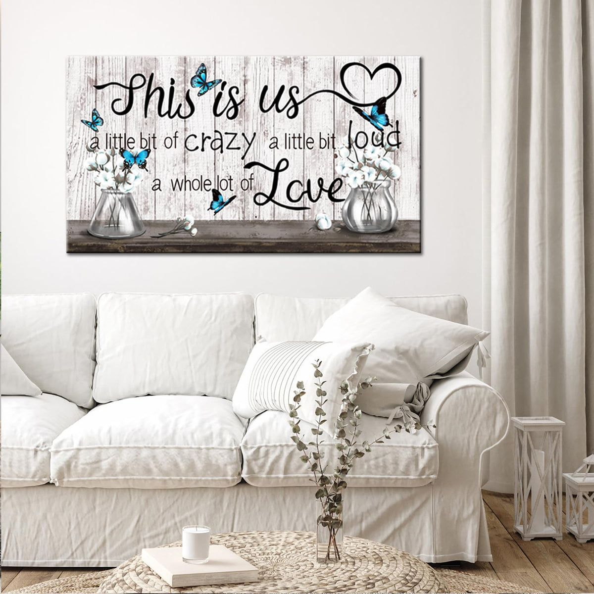 Conipit Large Farmhouse Canvas Wall Art This Is Us Picture Inspirational Quotes Artwork Cotton Flower Teal Butterfly Painting Fr
