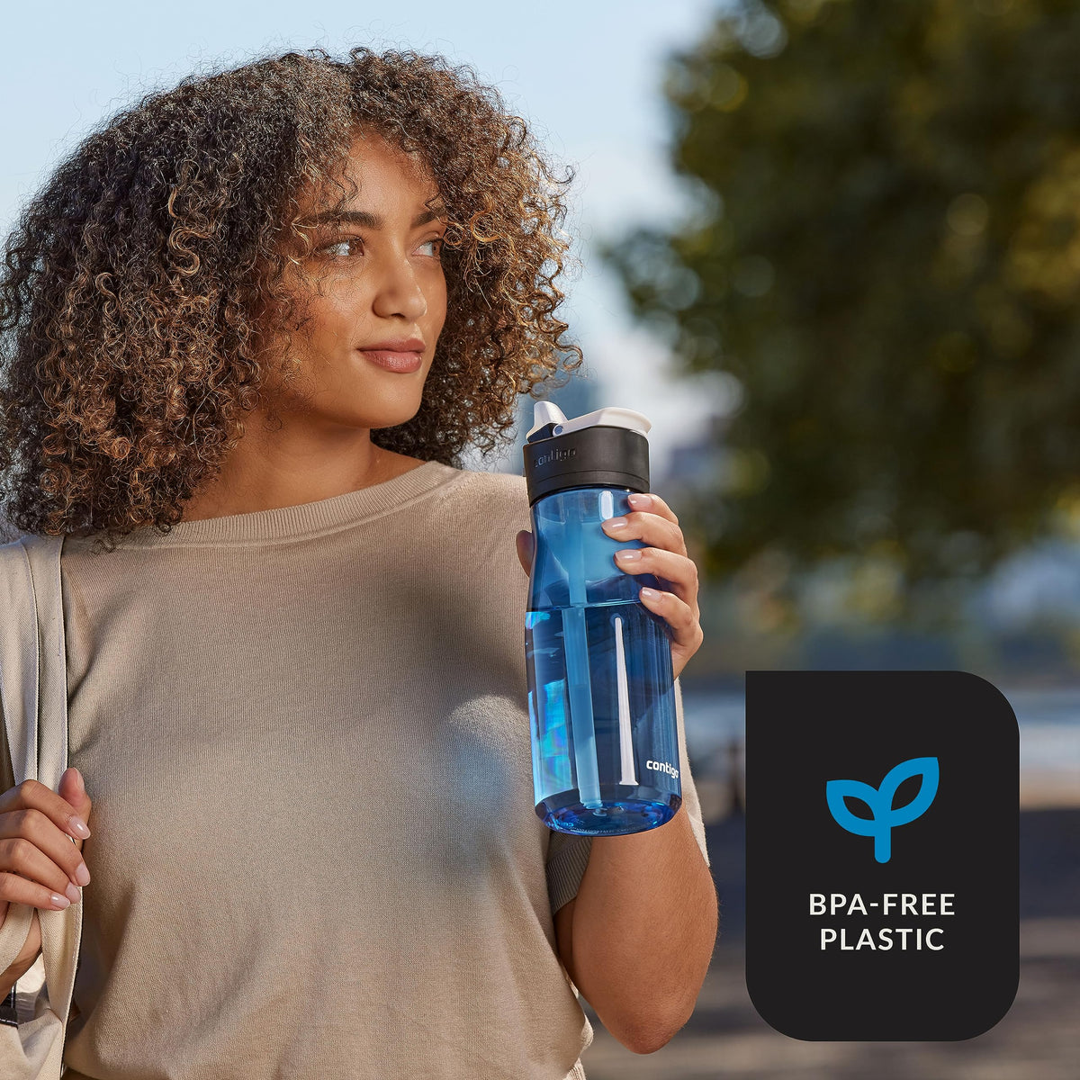 Contigo Ashland 2.0, 32Oz Leak-Proof Water Bottle With Interchangeable Lid, Angled Straw & Lid Lock, Blue Poppy Color, Dishwashe