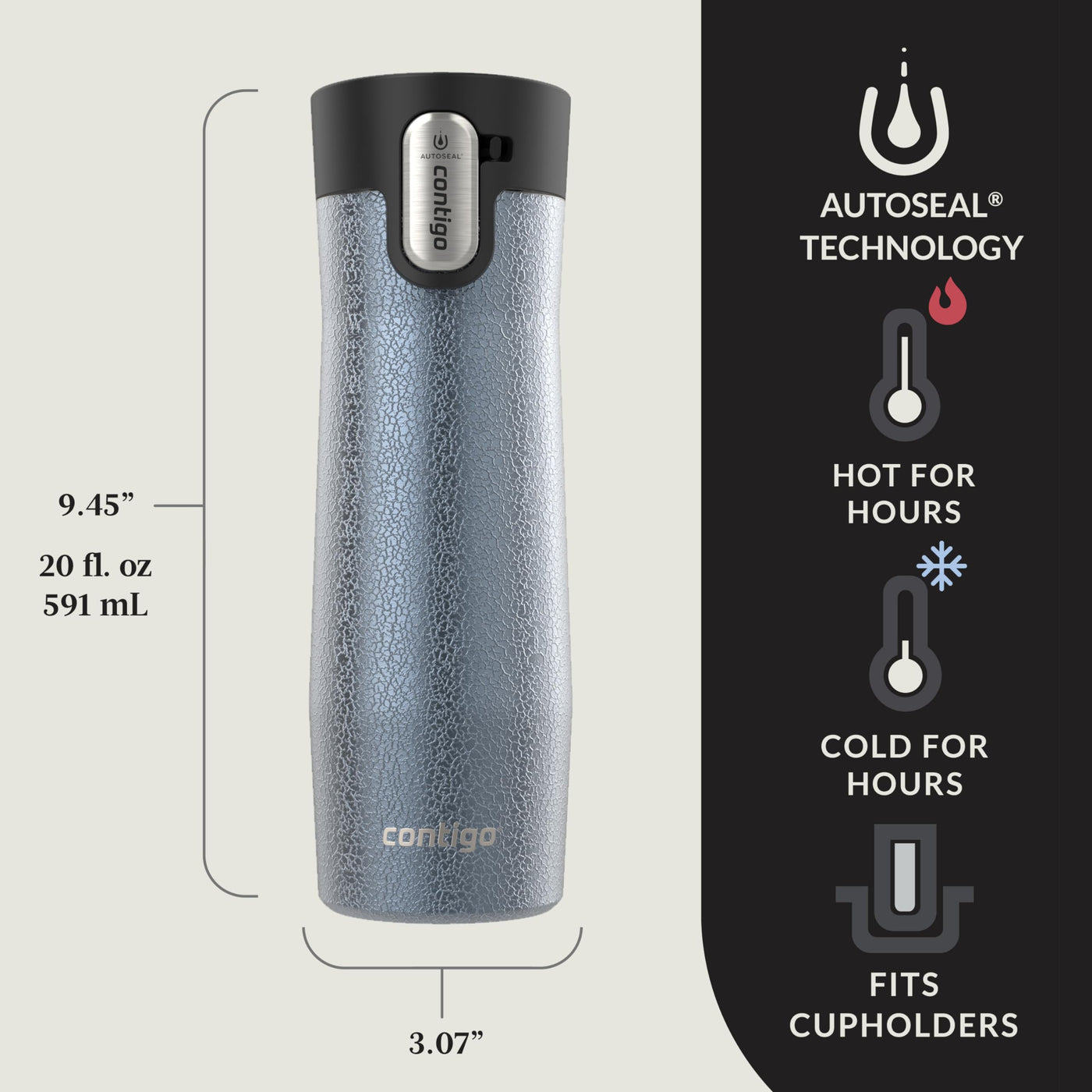 Contigo Autoseal West Loop Vacuum-Insulated Stainless Steel Travel Mug With Easy-Clean Lid, 20 Oz, 2 Pack, Crystal Lakeside; Cry
