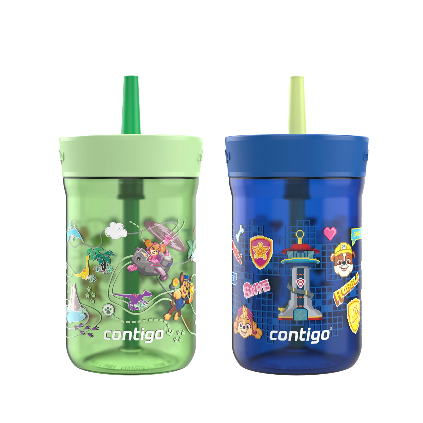 Contigo Kids Leighton Spill-Proof 2-Pack Paw Patrol Tumbler with Straw, 14oz, Power Pups and Dino Treks, Green and Blue